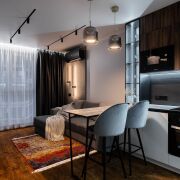 Квартира в идеальном состоянии, доступна к просмотру и заселению! 2-комнатная квартира-студия с дизайнерским ремонтом, которая находится на 6-м этаже по адресу: ул. Аэродромная 26А Дом 2022 года постройки. Общая площадь квартиры 42,1 м2. Преимущества: - Ремонт делали для себя из высококачественных материалов - Вдохновляющий вид из панорамных окон - Двухкамерные стеклопакеты - Премиальная сантехника, бытовая техника, мебель и электрика