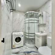 Первая сдача квартиры. Свежий ремонт. Есть вся необходимая мебель (встроенная кухня, стол со стульями, шкаф-купе, диван) и бытовая техника (стиральная машина, плита газовая, вытяжка, микроволновая печь, холодильник). Современный санузел с душевой кабиной.