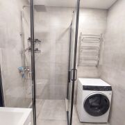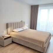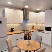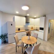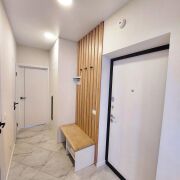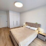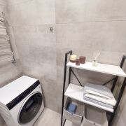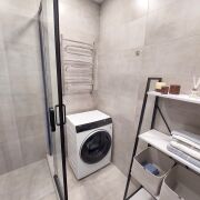 Имеется все необходимое для комфортного проживания. В частности, спальные места (кровать и огромный диван), места хранения вещей (несколько шкафов), техника (стиральная с сушилкой и посудомоечная машины, кондиционер, холодильник с морозильной камерой, телевизор, СВЧ и прочие мелочи).