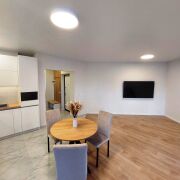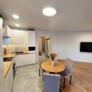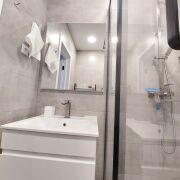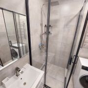 Евродвушка, где отдельная просторная спальня 17,6 кв.м. и комната с кухонным оборудованием 30,8 кв.м. Раздельный санузел с современным душевым уголком.