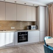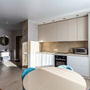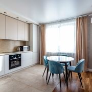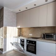 Квартира светлая, стильная и уютная, укомплектована постельными принадлежностями, посудой, а также всей необходимой техникой, в т. ч. посудомоечной машиной, индукционной варочной панелью, духовым шкафом, микроволновой печью, встроенным холодильником. Телевизор, 2 кондиционера, стиральная машина, высокоскоростной интернет.