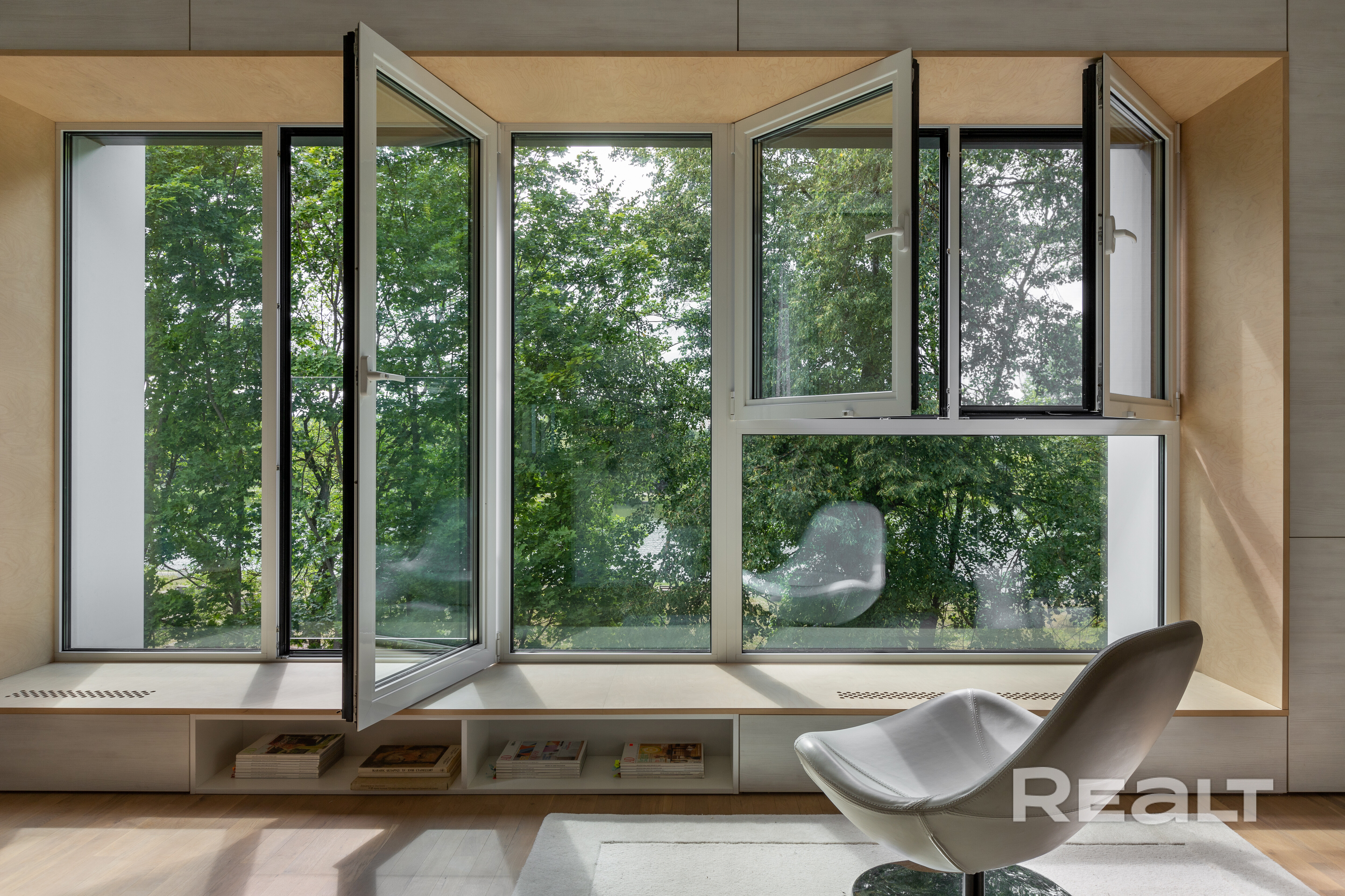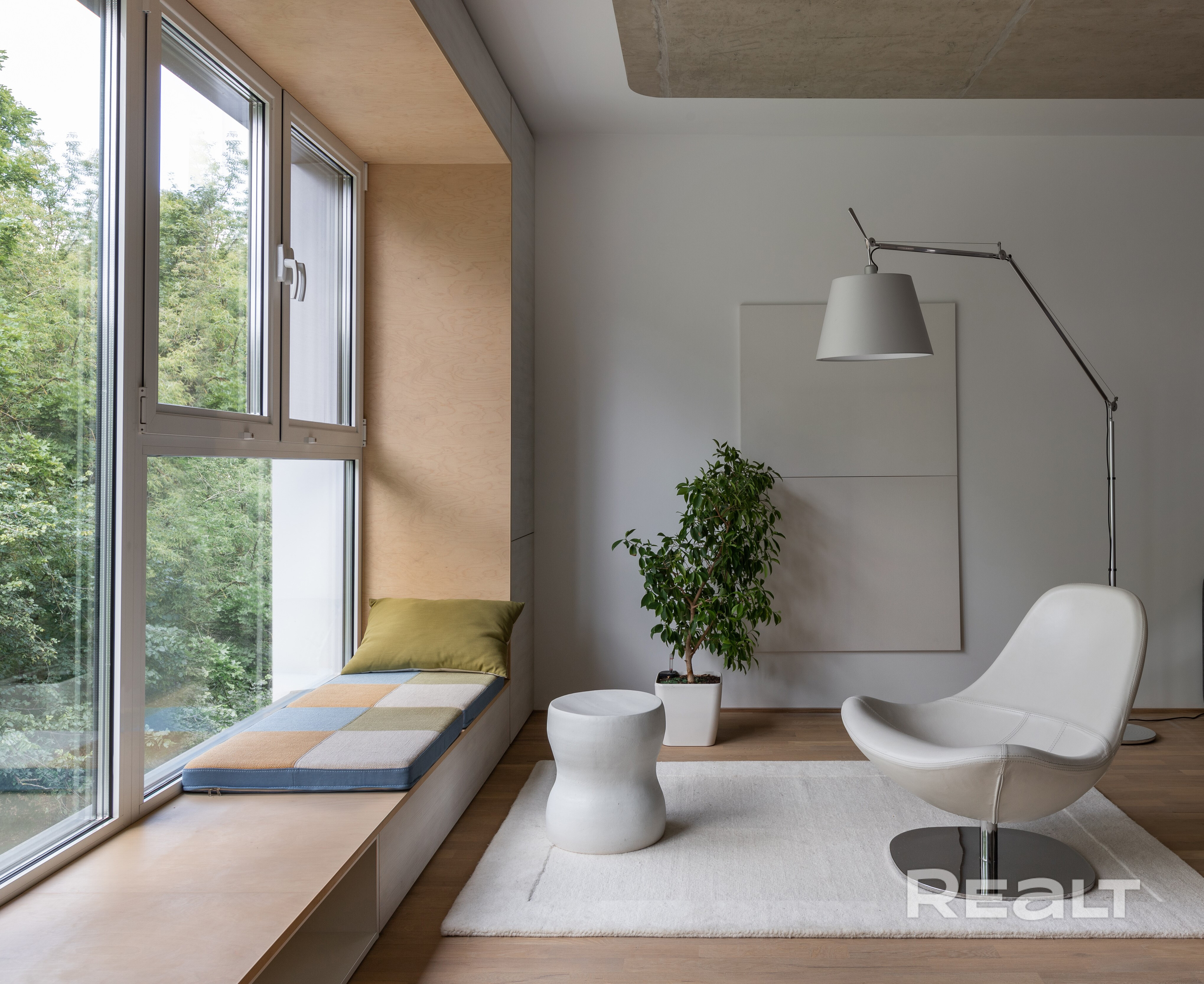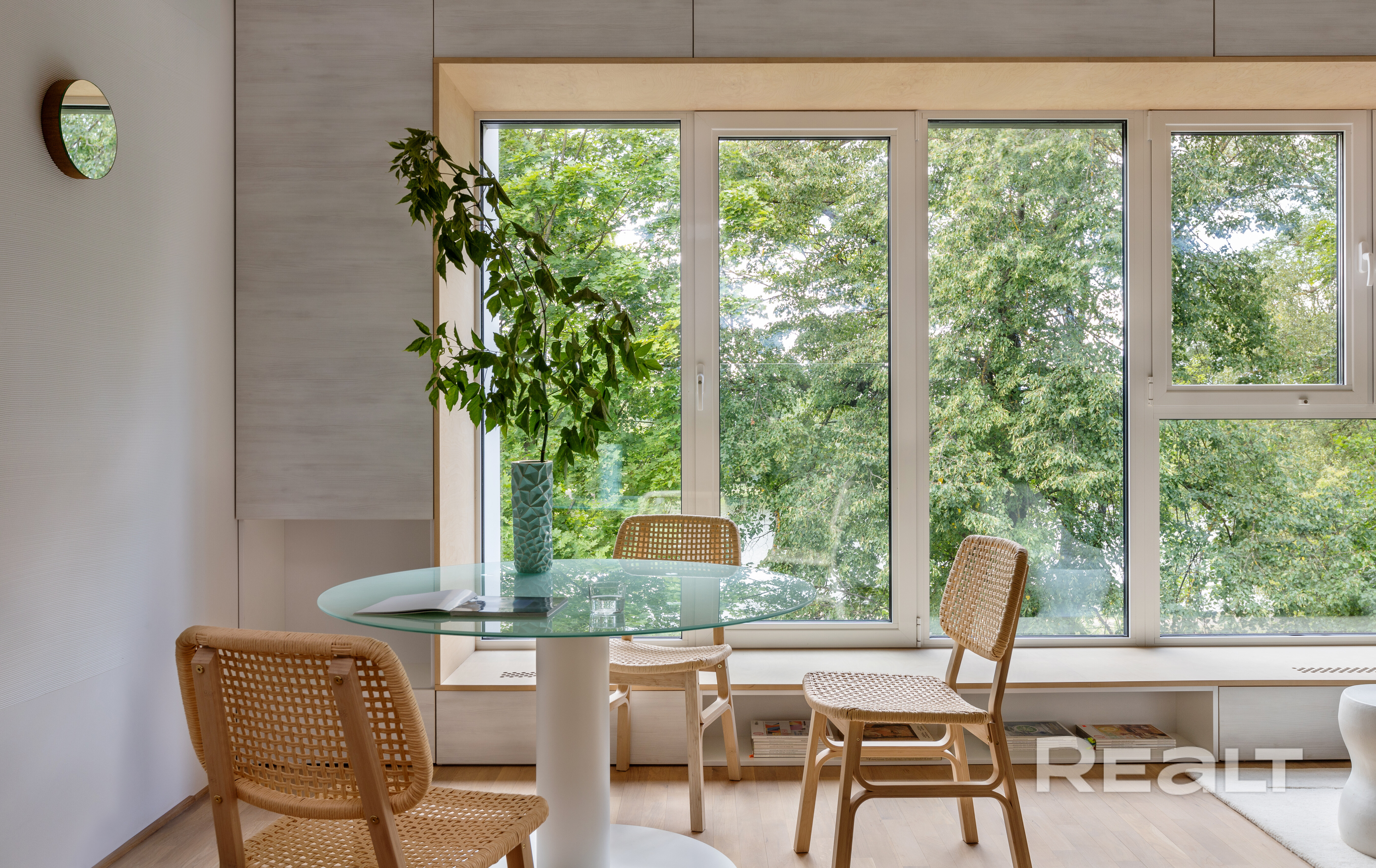 Открытый вид, много света, панорамные окна с прекрасным видом на реку Свислочь и парк.