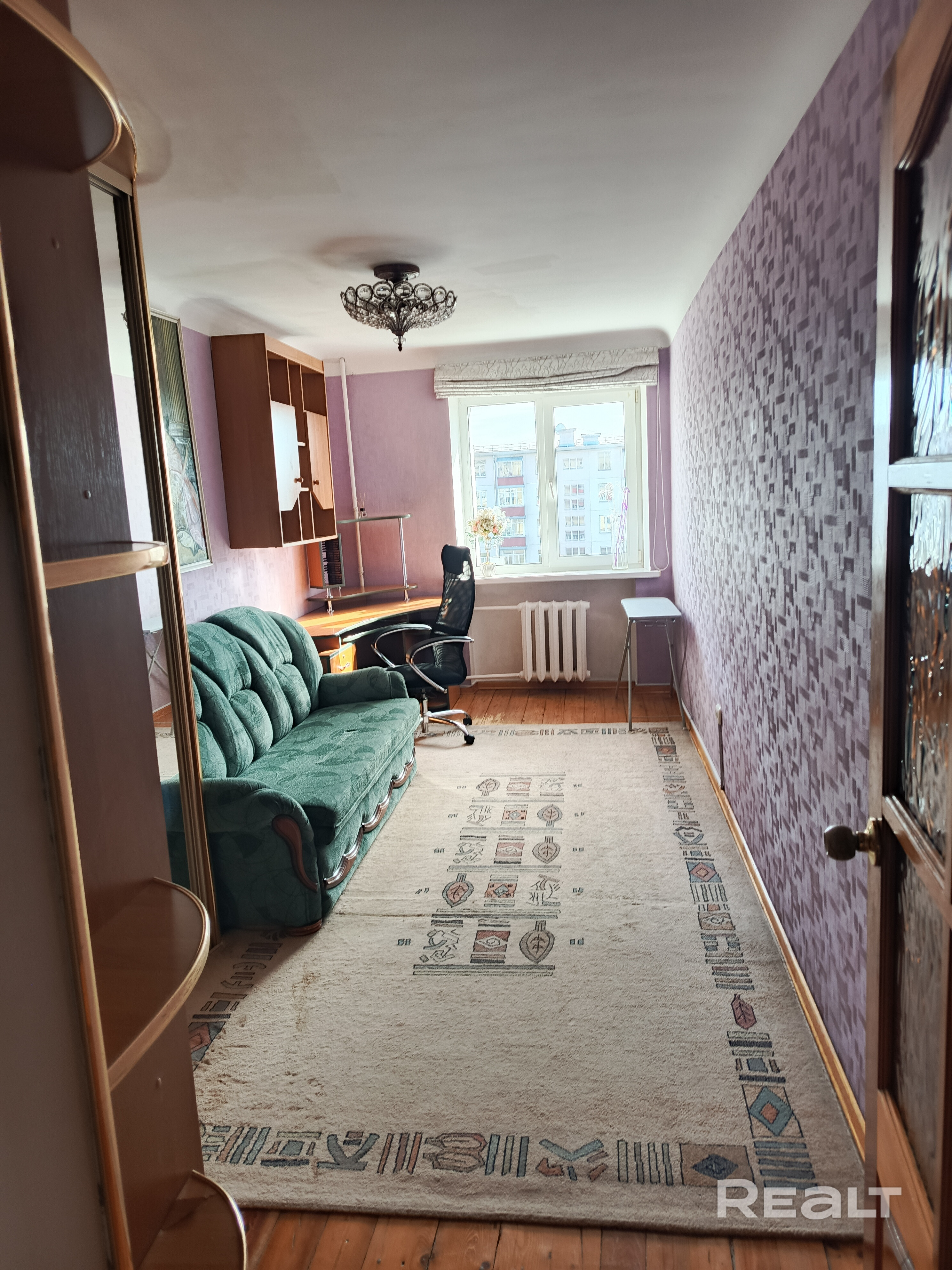 Квартира расположена около универмага Беларусь. Доступны все виды транспорта метро, маршрутное такси, троллейбус, автобус. Из квартиры одни окна выходят на проспект, другие во двор. Около дома есть парковочные места для автотранспорта.
