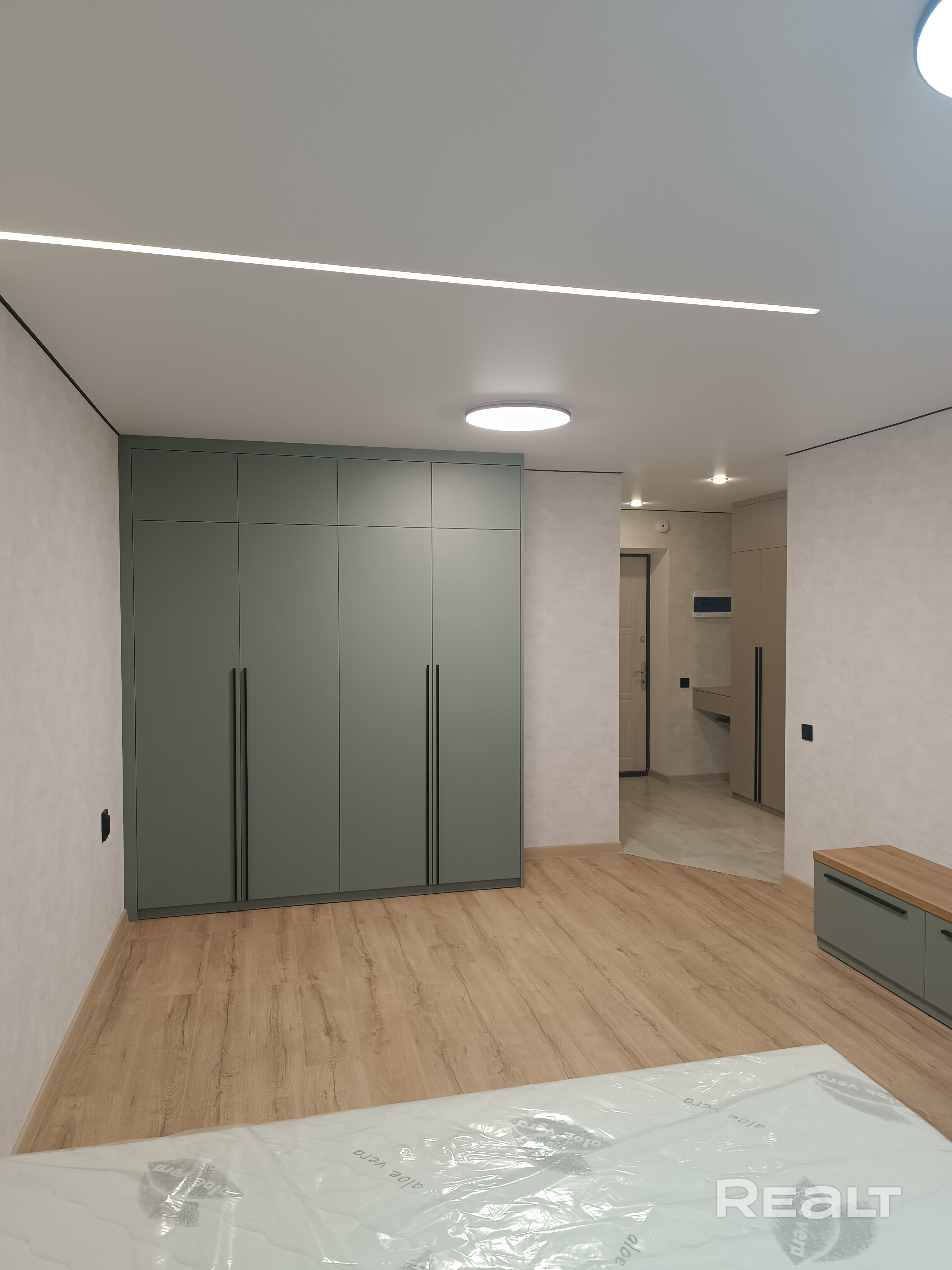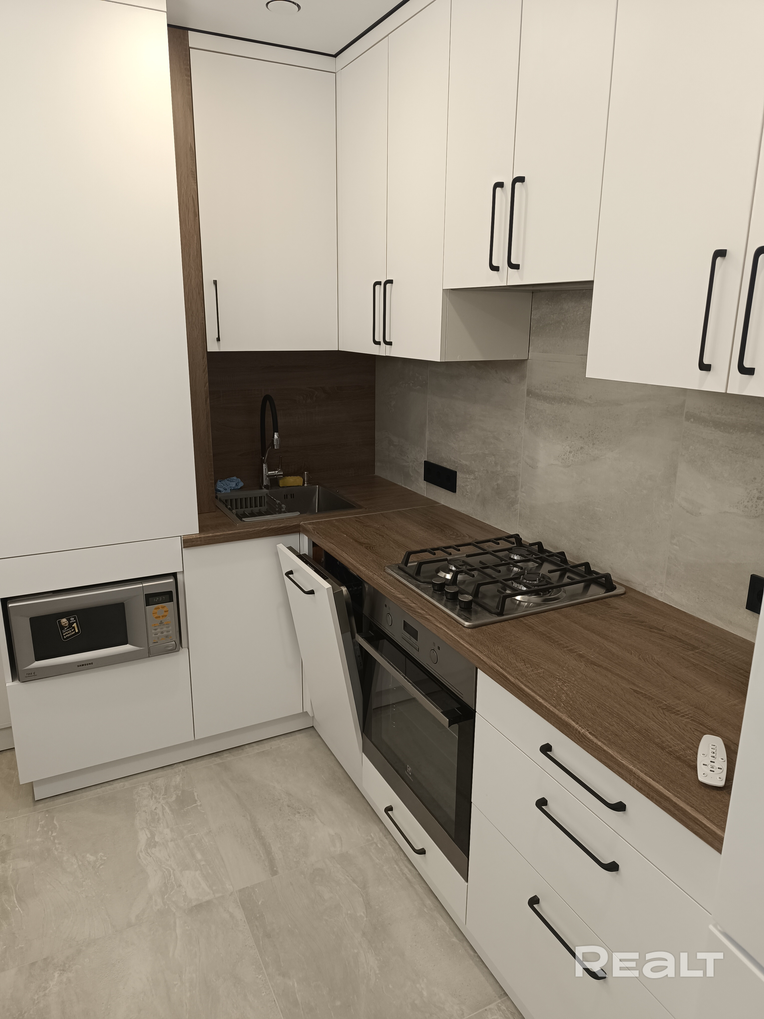 Сдается однокомнатная просторная квартира в новостройке в аг. Хатежино. До МКАД 8 км. До ст. м. Каменная горка 10 минут езды на общественном транспорте, остановка менее 50 метров от поъезда. Первая сдача, новая техника, новая мебель, только закончен ремонт.