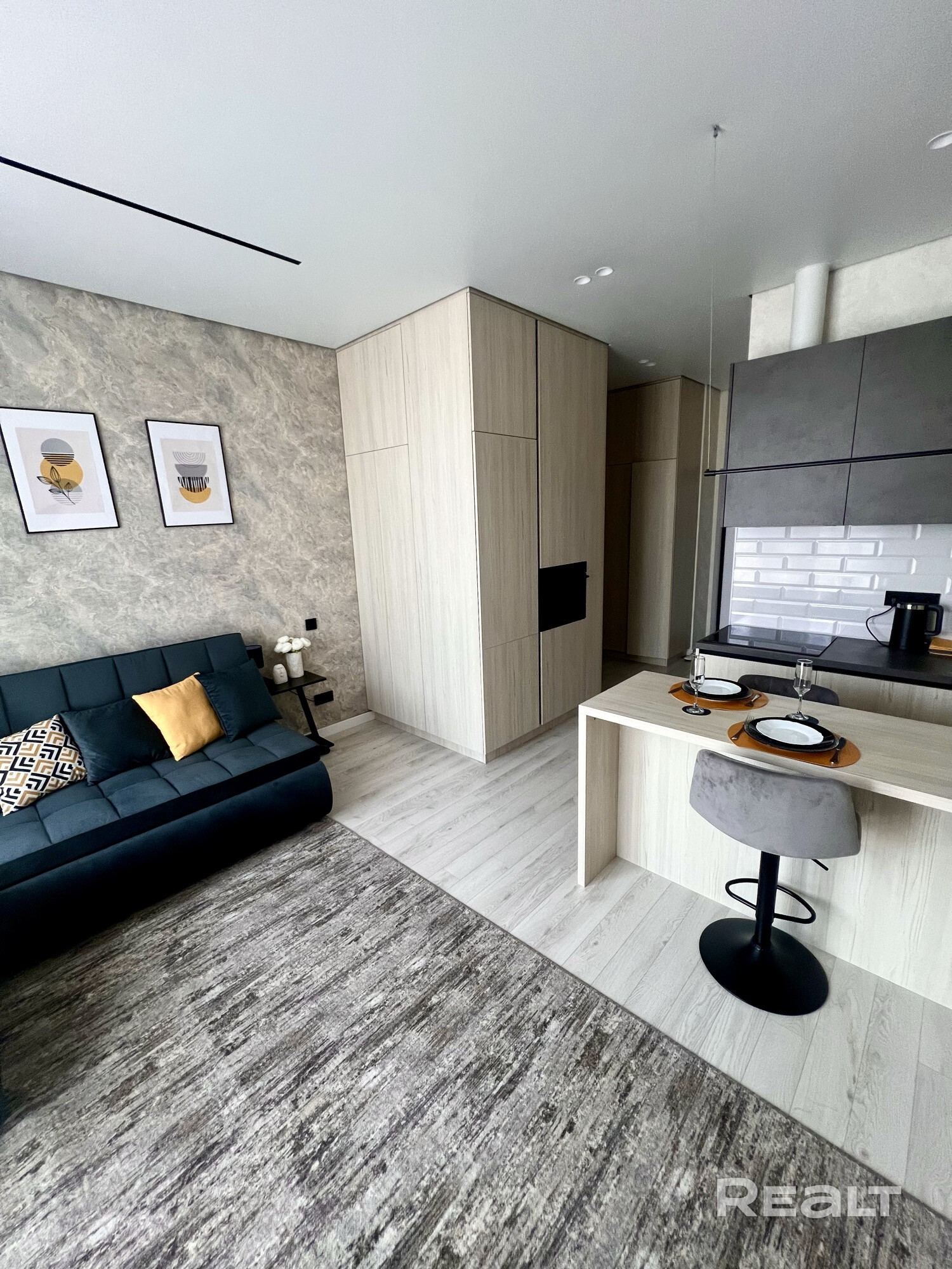 Современная уютная 1-комнатная квартира-студия сдается на 25-м этаже в доме Мумбаи с умопомрачительным видом! Качественный дизайнерский ремонт, мебель по индивидуальному заказу, потолки - 3 метра, лоджия. Квартира полностью укомплектована и ждет нового хозяина. Есть вся необходимая импортная бытовая техника: кондиционер, телевизор, стирально-сушильная машина, индукционная плита, духовка, СВЧ, холодильник, пылесос, утюг, чайник и фен. В квартире очень много мест для хранения, есть и посуда, и постельное бельё, и полотенца, и интернет - бери зубную щётку и заезжай! Современный интерьер, чистый подъезд, панорамный лифт, дружелюбные соседи. Возле подъезда остановка общественного транспорта - до института культуры - 10 мин, до центра города - 17 мин, на такси - одна остановка в любую точку. Приглашаю на просмотр - почувствуй себя властелином города - здесь нужно жить только ради вида из окна! Самая высокая точка мира (Минск-мира)))! Очень позитивная, светлая, вкусная квартира! Без животных, детей и в/п. Аренда минимум на 1 год!!! Задаток за один месяц. Хорошему человеку - торг, торт и шампанское. А ещё - у нас мистическая энергетика - тот, кто снимет - тот разбогатеет)))