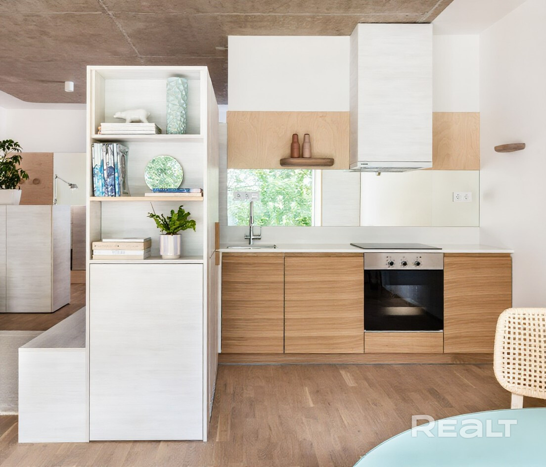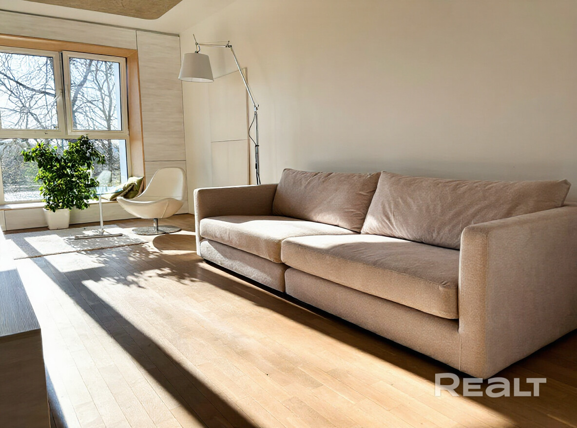 Квартира сделана по авторскому дизайн проекту, светлое пространство с шикарным панорамным видом на реку Свислочь и парк.