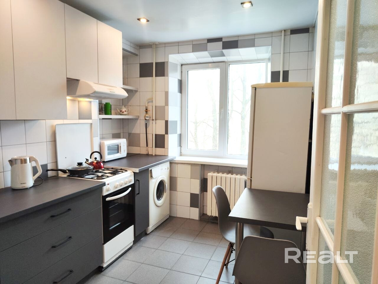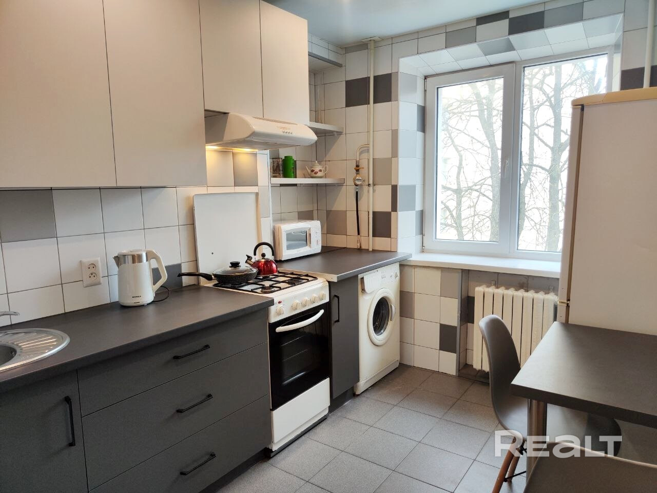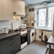 Новая встроенная кухня с бытовой техникой (стиральная машина, холодильник, газовая плита, микроволновая печь, пылесос, утюг)