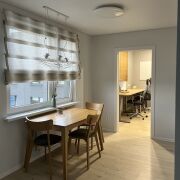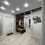 Пожалуйста, пишите в телеграм: Классная, светлая, просторная 4-ех комнатная квартира. Отдельное преимущество - полноценный кабинет с двумя столами. Есть гардеробная, много мест для хранения. Качественная мебель из массива, тёплый свет, в окнах можно встречать восход и закат — в квартире всегда много естественного света. Из техники есть всё, что делает жизнь проще: — полностью оборудованная кухня, посудомоечная машина — стирально-сушильная машина — лампы и выключатели умный дом