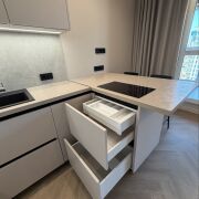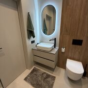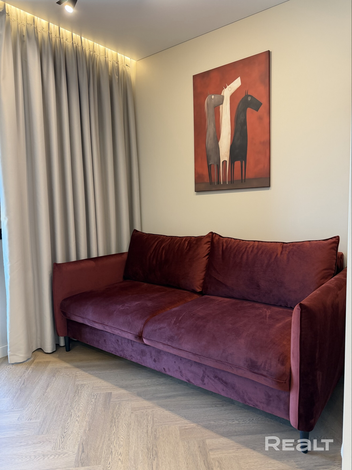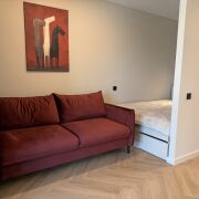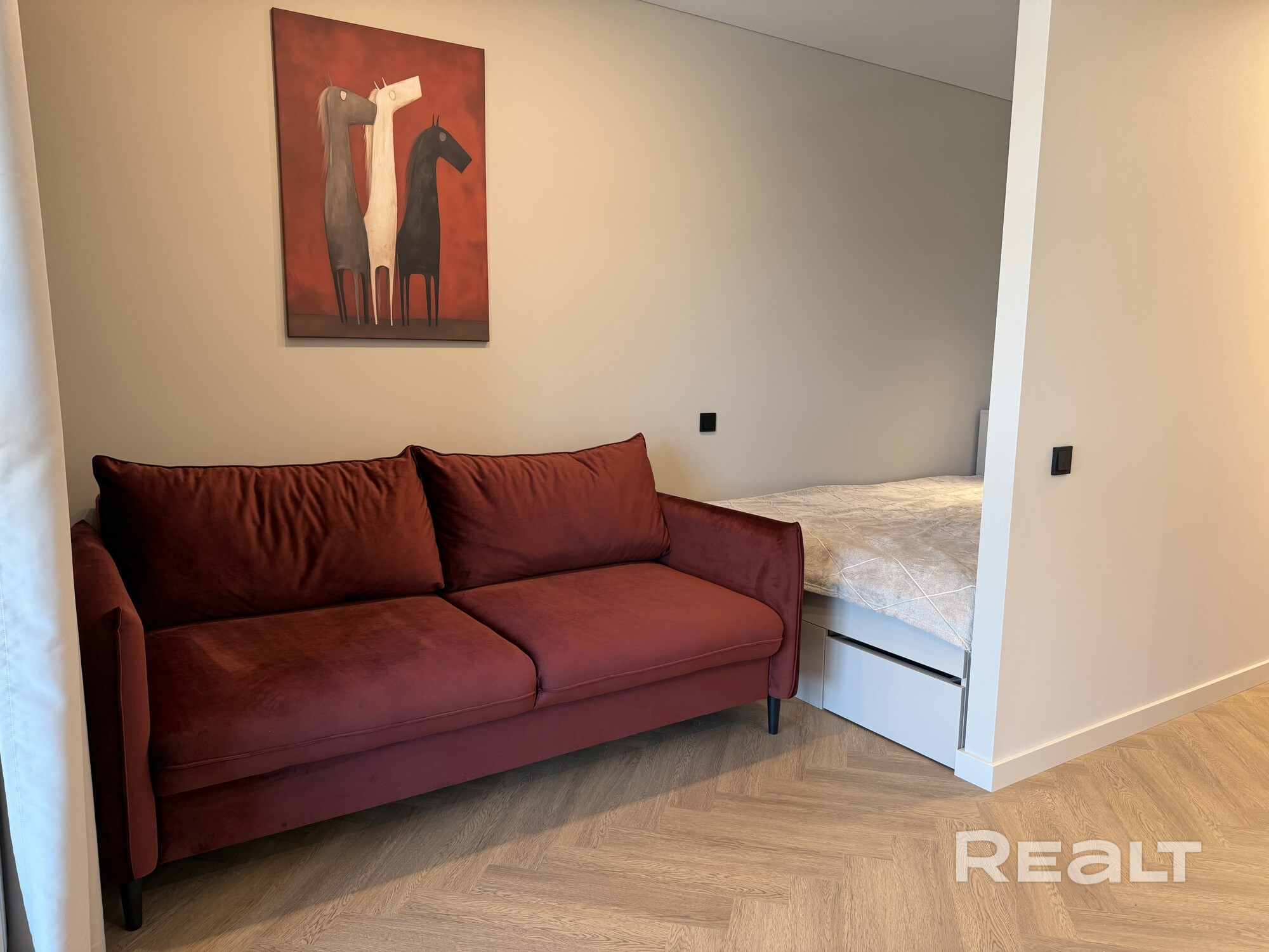 Студия в Минск-Мире (м. Аэродромная). Свежий стильный ремонт, новая мебель/техника. Отдельное спальное место (ортопед. матрас), рабочее место, гардеробная. Кухня с большим хранением, встроенный холодильник, духовка+СВЧ, фильтр для воды. Бойлер, кондиционер, стирально-сушильная машина. Без животных. Залог возвратный.
