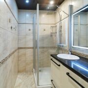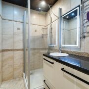 - Квартира с отличным ремонтом: на полу уложен ламинат и кафель, установлена система теплого пола, есть барная стойка - все выполнено со вкусом и качественно.