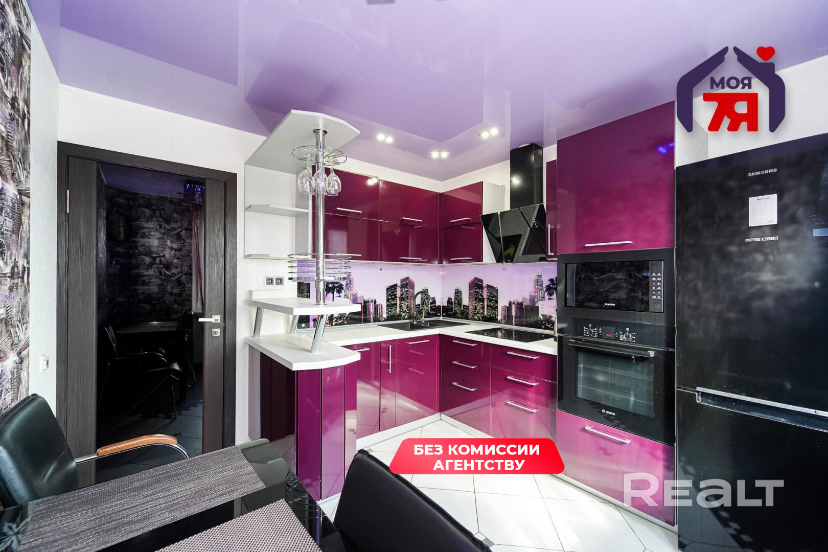- Кухня оборудована всей необходимой техникой (индукционная варочная поверхность, духовой шкаф, печь СВЧ).