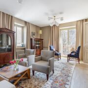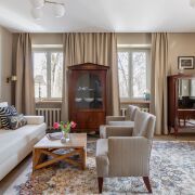 Первое заселение! 2-к квартира в «сталинке» после капремонта (2025 год). В квартире: просторная кухня, впечатляющая гостиная, уютная спальня, санузел, прихожая, балкон и уникальная лоджия. Квартира полностью укомплектована всем необходимым для комфортной жизни: коллекционные светильники и мебель, новая сантехника и бытовая техника премиум-класса, рекуперация, бойлер. Французские окна в добротных деревянных рамах, отреставрированные двери 18 века, высокие потолки, вместительные встроенные шкафы.