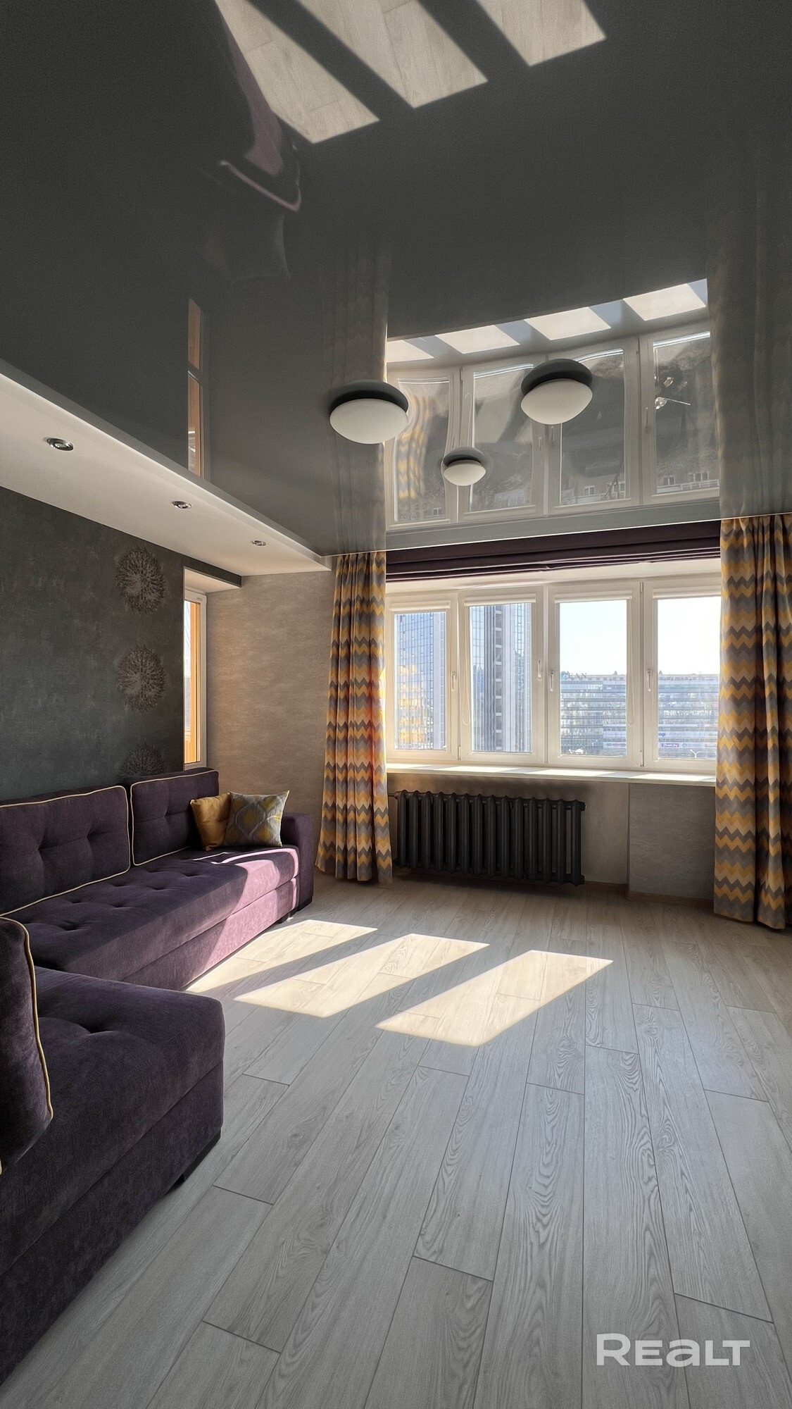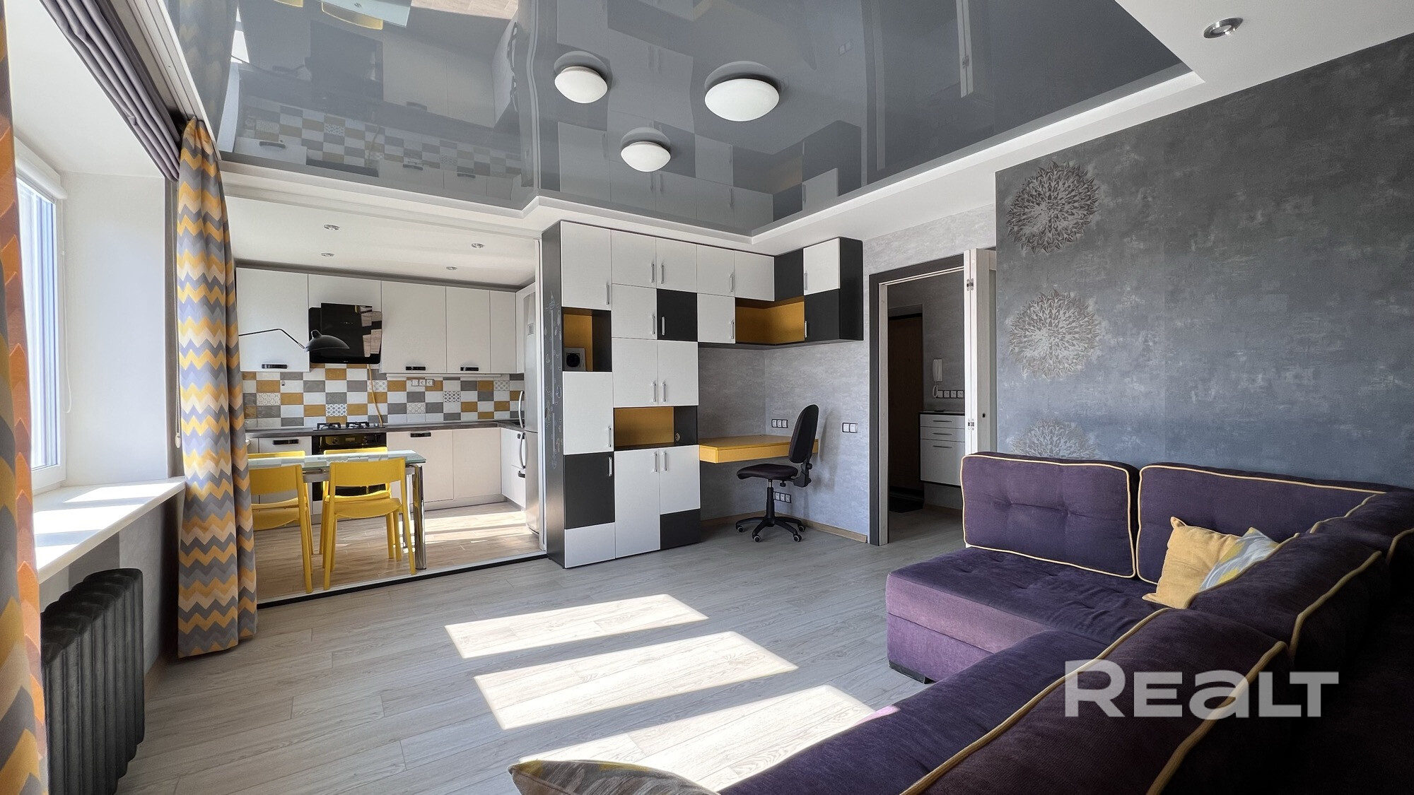 Светлая 2-к квартира в тихом центре Минска. Вы будете первыми жильцами после ремонта +Сделан капитальный ремонт. Квартира в кирпичном 7ми эт. доме, на 7ом эт. сверху технический эт. Спальня - 12,4 м2. Общая комната - 17,3 м2, объединена с кухней 7 м2 с возможностью закрыть кухню. Из гостиной выход на остекленную лоджию. Качественная мебель: раскладной 2-сп. диван после химчистки, встроенные шкафы с удобной системой хранения по всей кв. Кухня полностью укомплектована техникой. На длит. срок