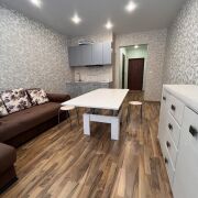 Хорошая квартира студия со свежим ремонтом, свежей мебелью, укомплектована посудой. До метро 15 минут на маршрутном такси, есть всегда где поставить личный автомобиль.