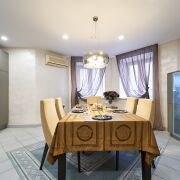 Есть все необходимое для комфортного проживания- качественная бытовая техника (посудомоечная машина, стиральная машина, духовой шкаф, микроволновка,стиральная машина ), мебель, шторы, кондиционеры во всех комнатах.