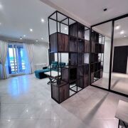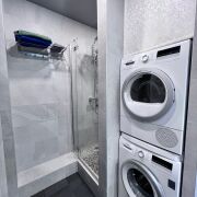 Изолированная спальня обеспечит вам приватность и спокойствие. Кухонная зона укомплектована всей необходимой бытовой техникой от ведущих производителей, что сделает процесс приготовления пищи максимально комфортным. Ванная комната с современной сантехникой и отдельной душевой кабиной, а также наличие стиральной и сушильной машин, добавляют квартире дополнительное удобство.