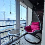 Просторная двухкомнатная квартира: одна изолированная комната с отдельной большой гардеробной и гостиная, совмещенная с кухней. Кухня полностью оборудована: посудомоечная машина, духовой шкаф, СВЧ-печь, чайник, индукционная плита. Большой совмещенный санузел с ванной и душевой кабиной, имеется стиральная и сушильная машины.