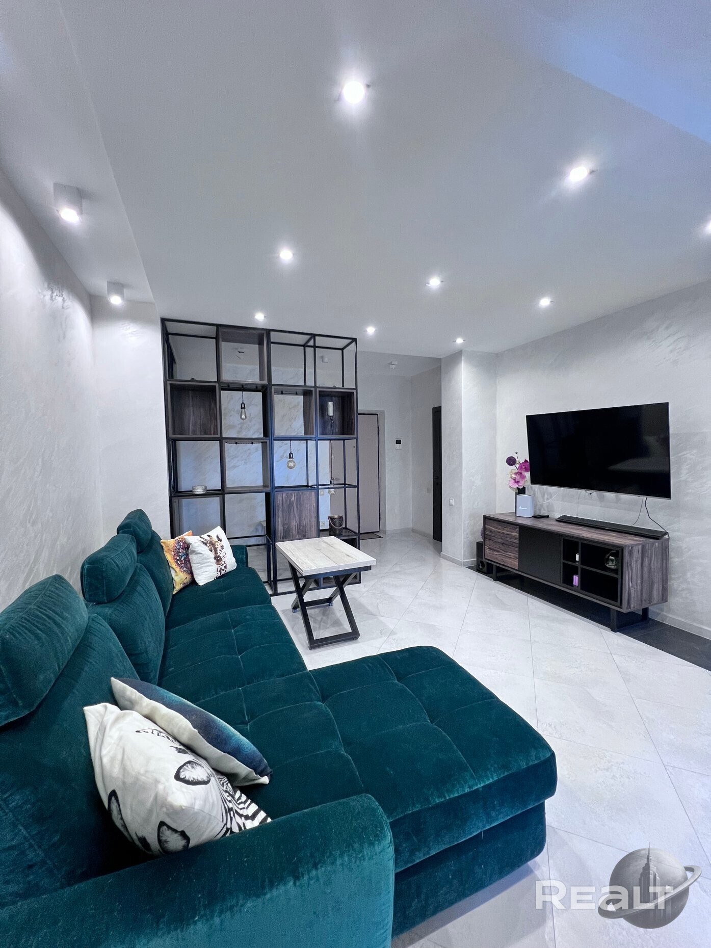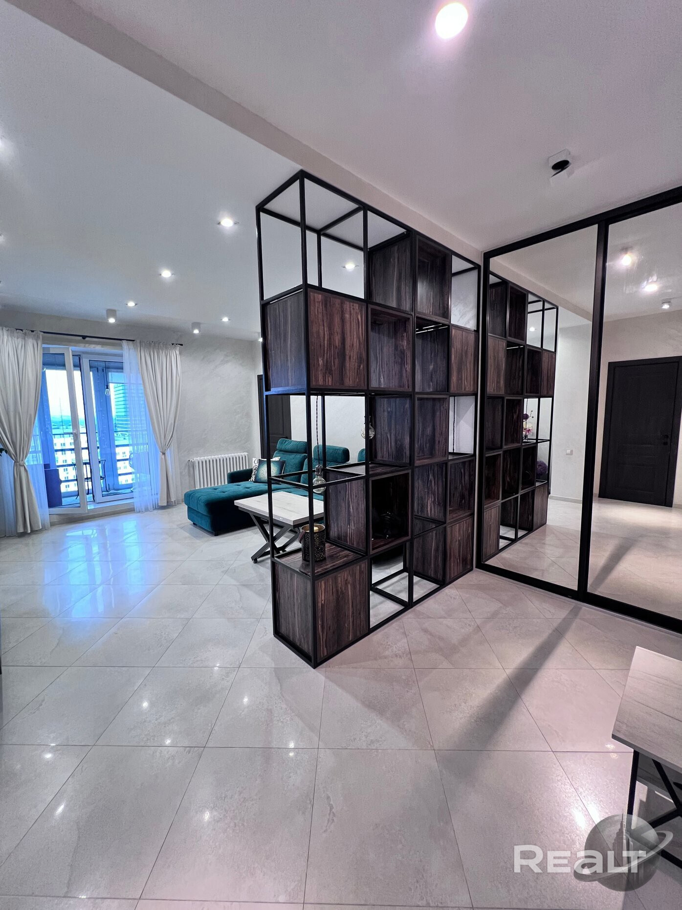 Квартира выполнена в современном стиле, с использованием высококачественных материалов. Дизайн продуман до мелочей, создавая уютную и функциональную атмосферу. Просторная гостиная с панорамными окнами станет идеальным местом для отдыха и встреч с друзьями, а живописный вид на водохранилище Дрозды будет радовать вас ежедневно.