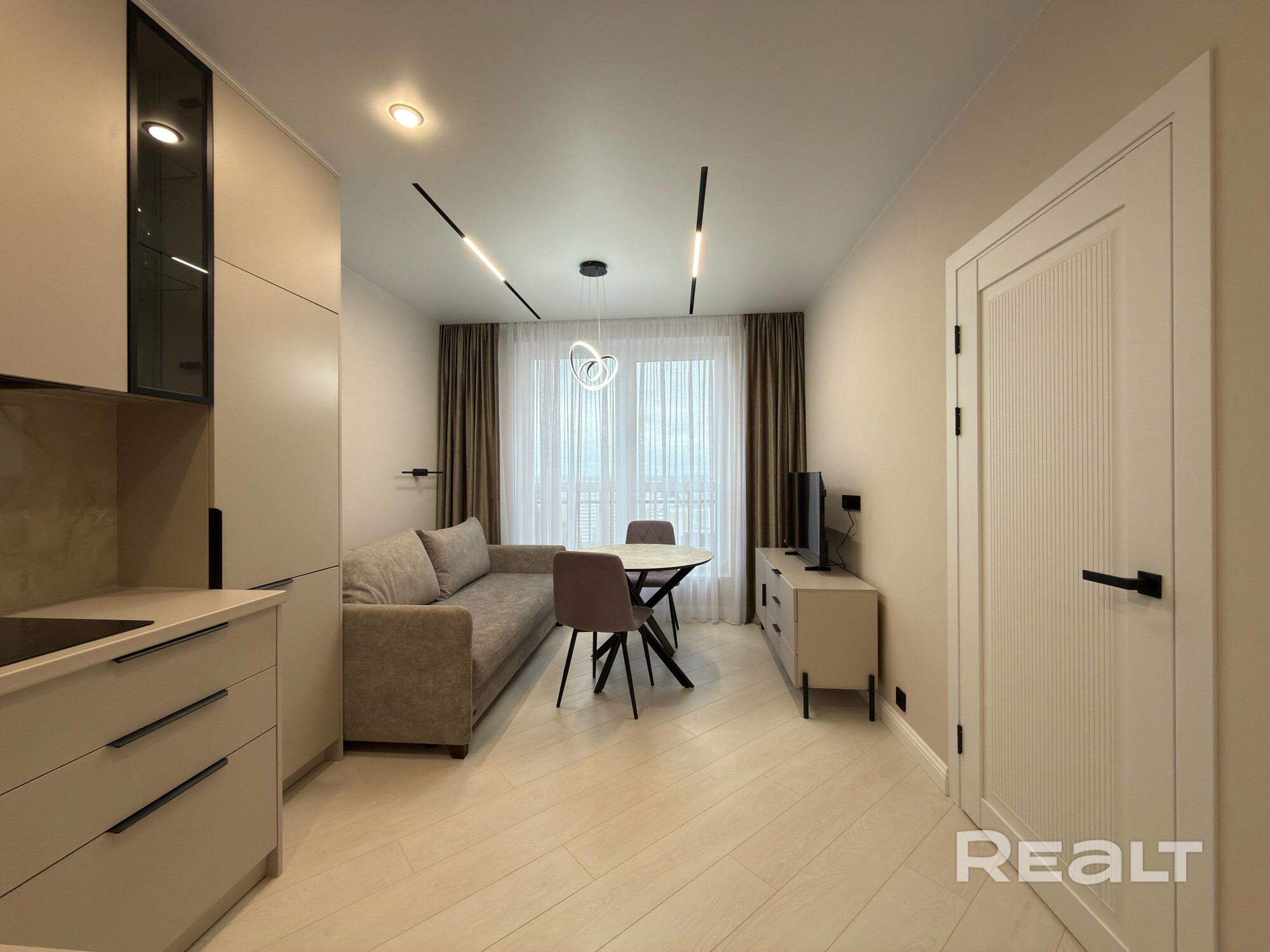 Планировка: коридор, совмещенная кухня гостиная, спальня с выходом на балкон, совмещенный с/у.