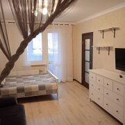 Квартира рядом с метро! Сдается в аренду современная 1-комнатная квартира в Минске по адресу: ул. Германовская,15, Октябрьский район. Квартира находится в доме 2014 года постройки на 1 этаже из 10. Общая площадь составляет 45 кв.м. Выполнен качественный ремонт: на полу ламинат и плитка. Установлены стеклопакеты и металлическая дверь. Квартира оснащена кухонной BOSCH, ТВ, стиральной машиной. Для хранения вещей предусмотрен шкаф-купе. Дополнительный комфорт создает лоджия.