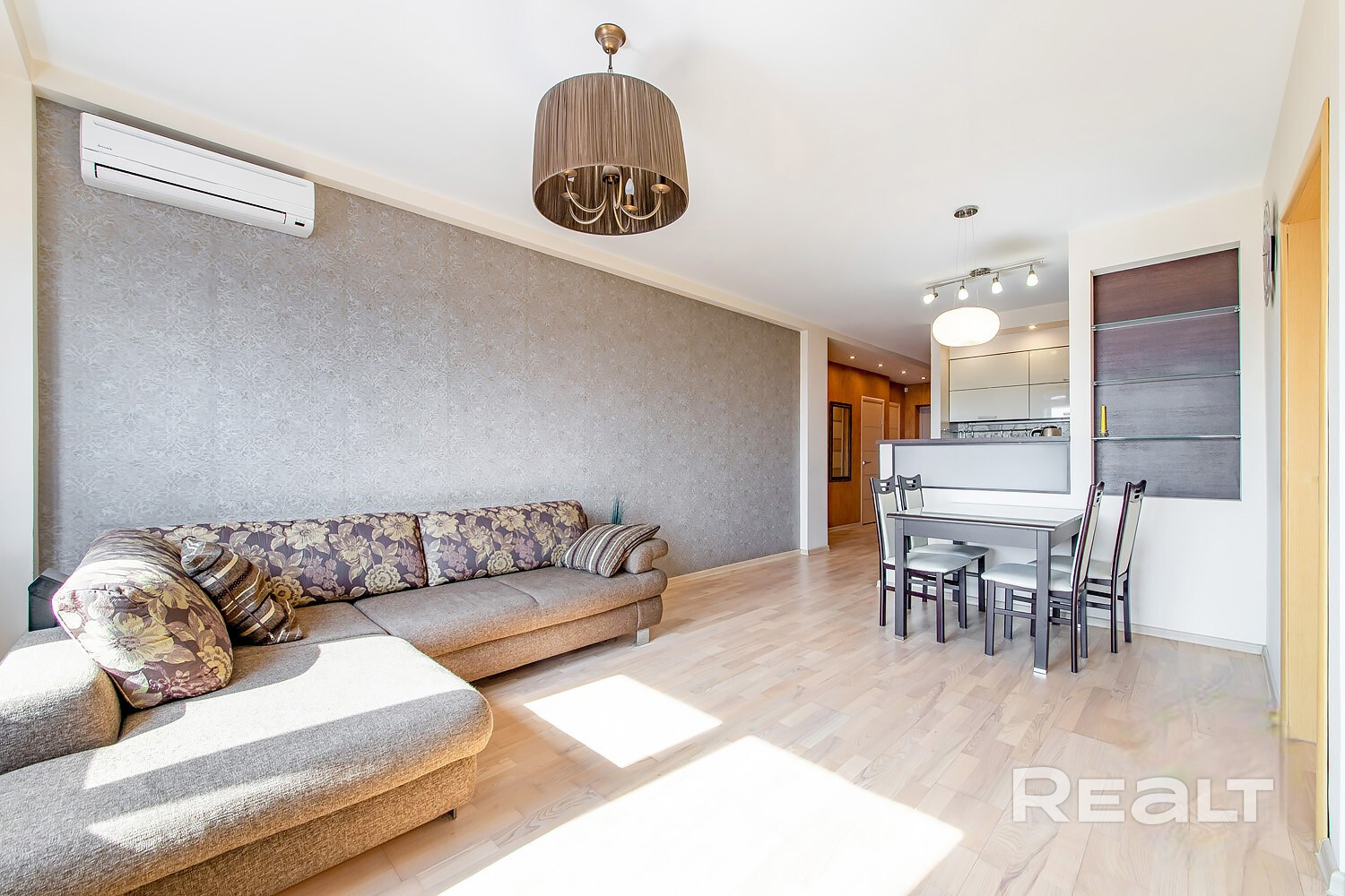 Теплая и светлая квартира;теплый пол в санузлах;2 гардеробных; до метро 7 минут пешком.Наличие:кондиционер,посудомоечная и стиральная машины,телевизор,CBЧ-печь,посуда,высокоскоростной интернет,бойлер.В квартире домофон, сигнализация,металлическая дверь,встроенные шкафы, стеклопакеты,хороший вид из окна,комфортная лоджия. Автопарковка во дворе за шлагбаумом.Благоустроенный двор огорожен,детская площадка,рядом магазины,супермаркеты,рынок,спортцентр,стадион,зеленая зона, гимназии и детсады.