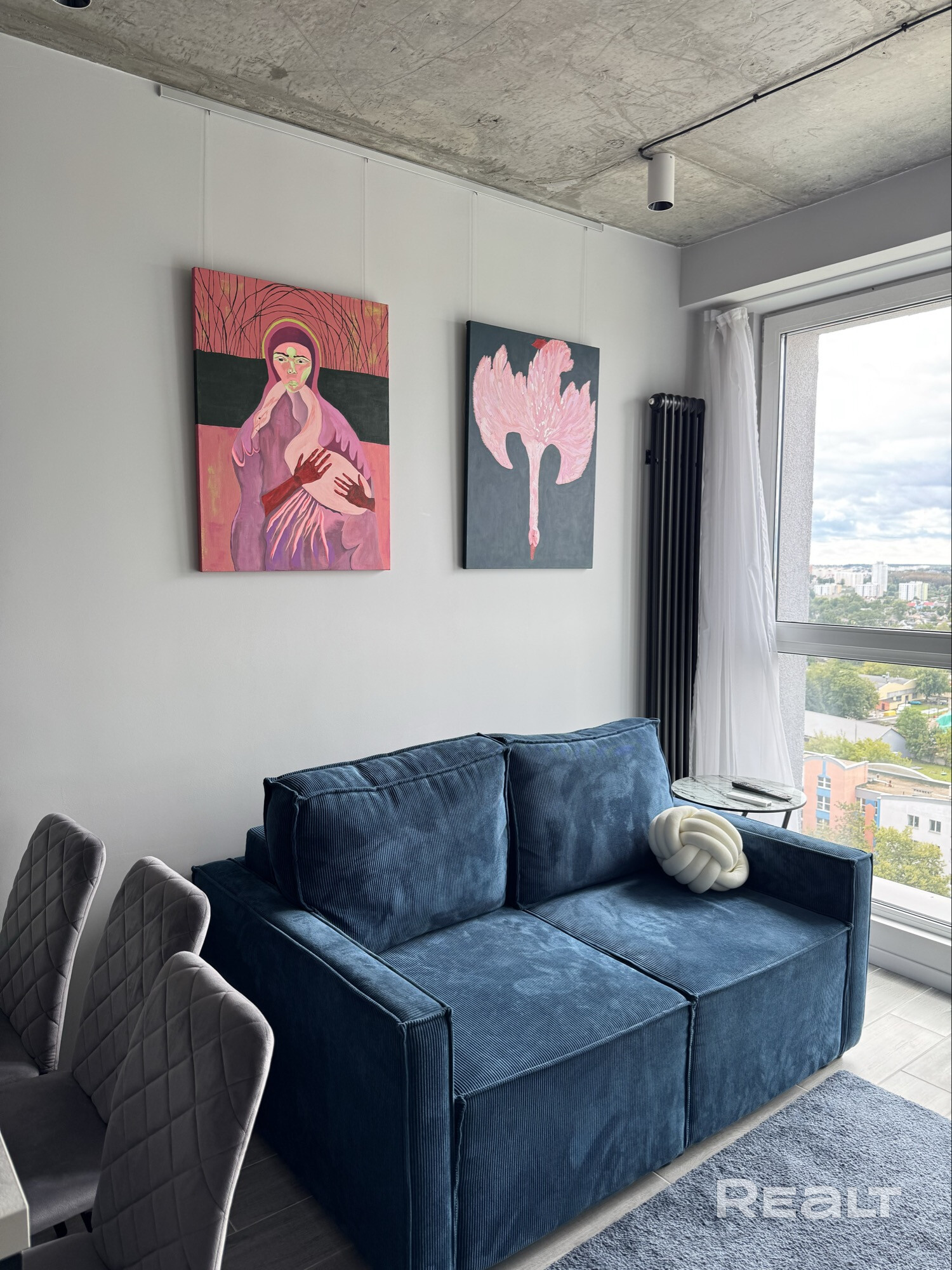 Сдается дизайнерская Евродвушка в Минск Мир Вид на город с просторной лоджии 15 этажа и никаких «окна в окна» Есть все необходимое для жизни: стиральная машина, встроенный холодильник , печь свч , духовка, телевизор , интернет и фильтр для воды В 3 минутах ходьбы есть средний по размеру продуктовый магазин в паркинге и несколько небольших магазинов (зоомагазин , аптека и тп) Сразу под домом есть остановка общественного транспорта Сдаю на длительный срок Возможно с животными, обсуждаемо При зак