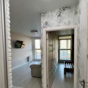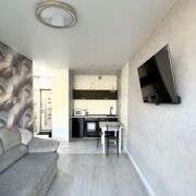 Квартира с новым, современным ремонтом, квартира полностью укомплектована мебелью и бытовой техникой, духовой шкаф, варочная панель, свч, есть посуда и столовые приборы.