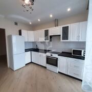 Кухня: современный гарнитур, оснащенный всей необходимой техникой (варочная панель, духовой шкаф, микроволновая печь, большой холодильник).