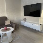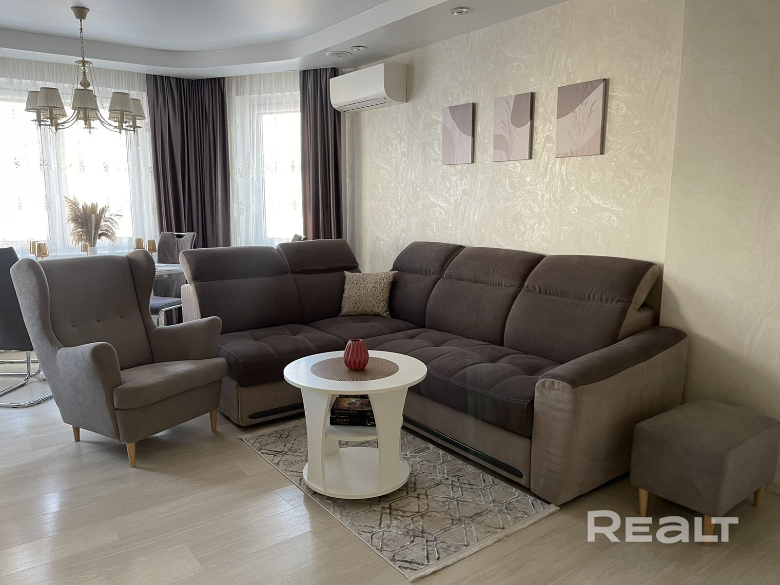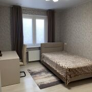 Просторная гостинная, обьединенная с кухонной зоной. Две отдельные комнаты: спальня и детская. Квартира полностью укомплектована мебелью и техникой, в т.ч холодильник, индукционная плита, посудомоечная машина, стиральная машина с сушилкой, кондиционеры, пылесос и бытовая утварь.В прихожей огромный встроенный шкаф, куда можно разместить абсолютно всё. Обустроенный двор закрытого типа с детской площадкой, огороженной волейбольной площадкой, парковкой (под шлагбаумом). До метро Грушевка - 5 мин.