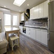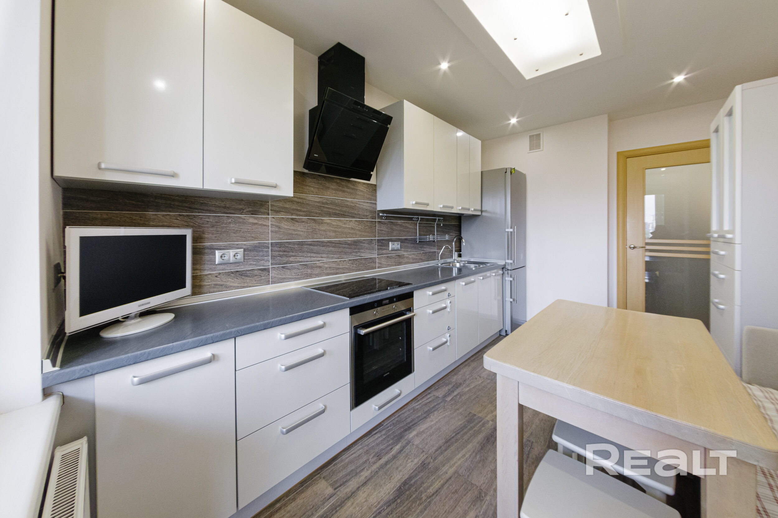 Закрытая территория, видеонаблюдение. Кухня отдельная со встроенной бытовой техникой (духовой шкаф, посудомоечная машина, индукционная плита, СВЧ-печь, холодильник)