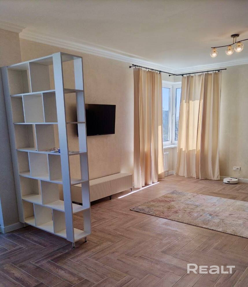 Сдается просторная 1-комнатная квартира в Минске (ул. Грушевская), рядом с метро Грушевка. Квартира абсолютно новая. Современный ремонт, стеклопакеты, лоджия и лифт. Квартира полностью укомплектована: холодильник, стиральная и посудомоечная машины, робот-пылесос, телевизор, система-хранения вещей. Развитая инфраструктура: рядом метро, поликлиника, кафе и фитнес-центр. Отличный вариант для комфортной жизни для одного человека или пары.
