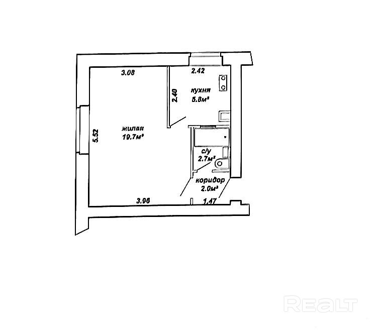 19.7 м²
