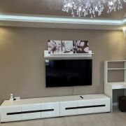 Есть все для комфортного проживания. Современная мебель и вся бытовая техника, посудомоечная машина, ванна-джакузи с подсветкой, кондиционер, ТВ 65, СВЧ, утюг, пылесос, посуда, постельное белье, полотенца и т.д. Wifi (оптоволокно), теплый пол. Санузел раздельный. В шаговой доступности прод. магазины, спортивный центр, банки, почта, школа, рядом много ТЦ, развитая инфраструктура.