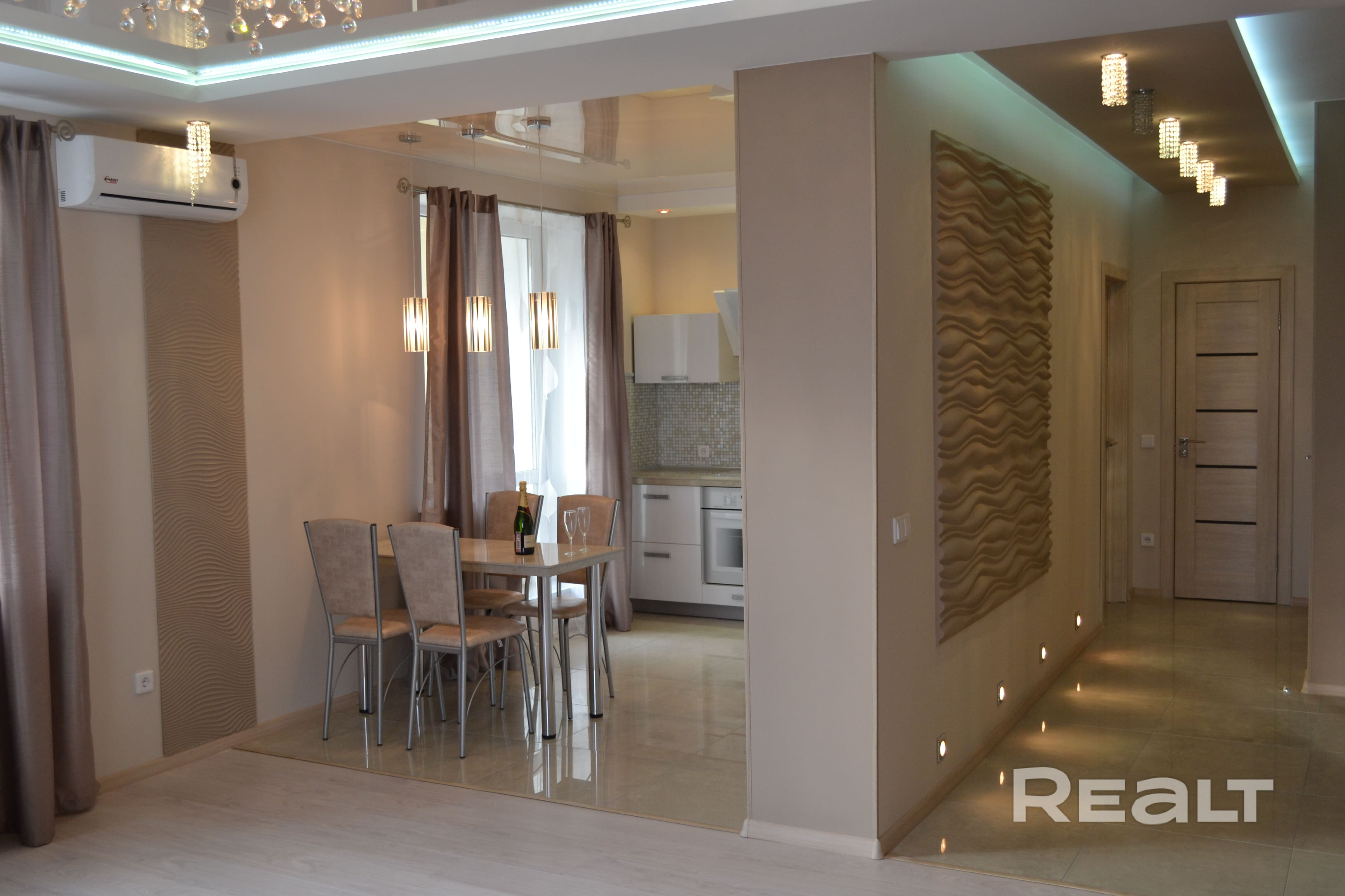Современная большая двухкомнатная квартира на 18 этаже 24 этажной новостройки в центре города.