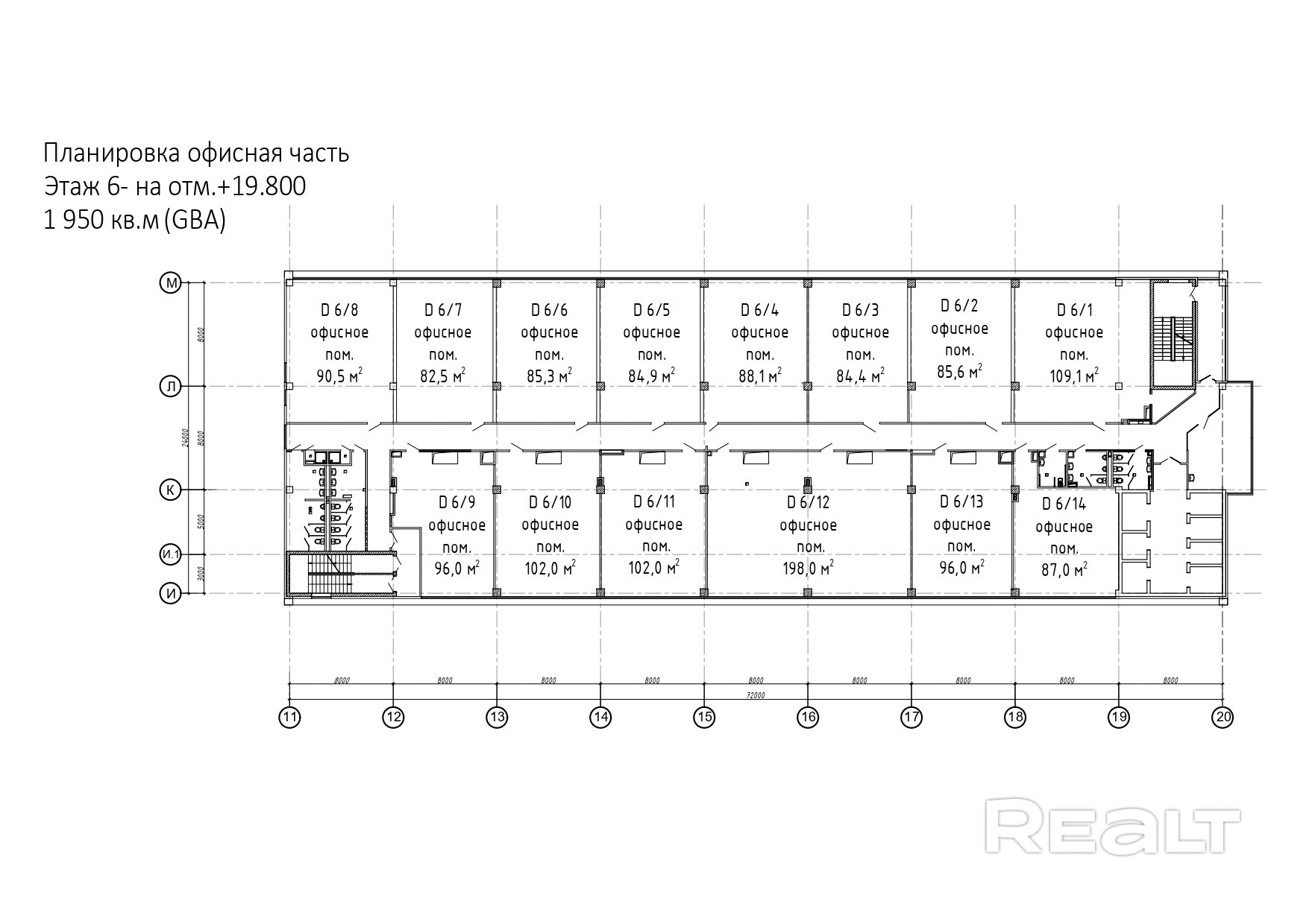 - Типовая площадь этажа: 1 900 м2