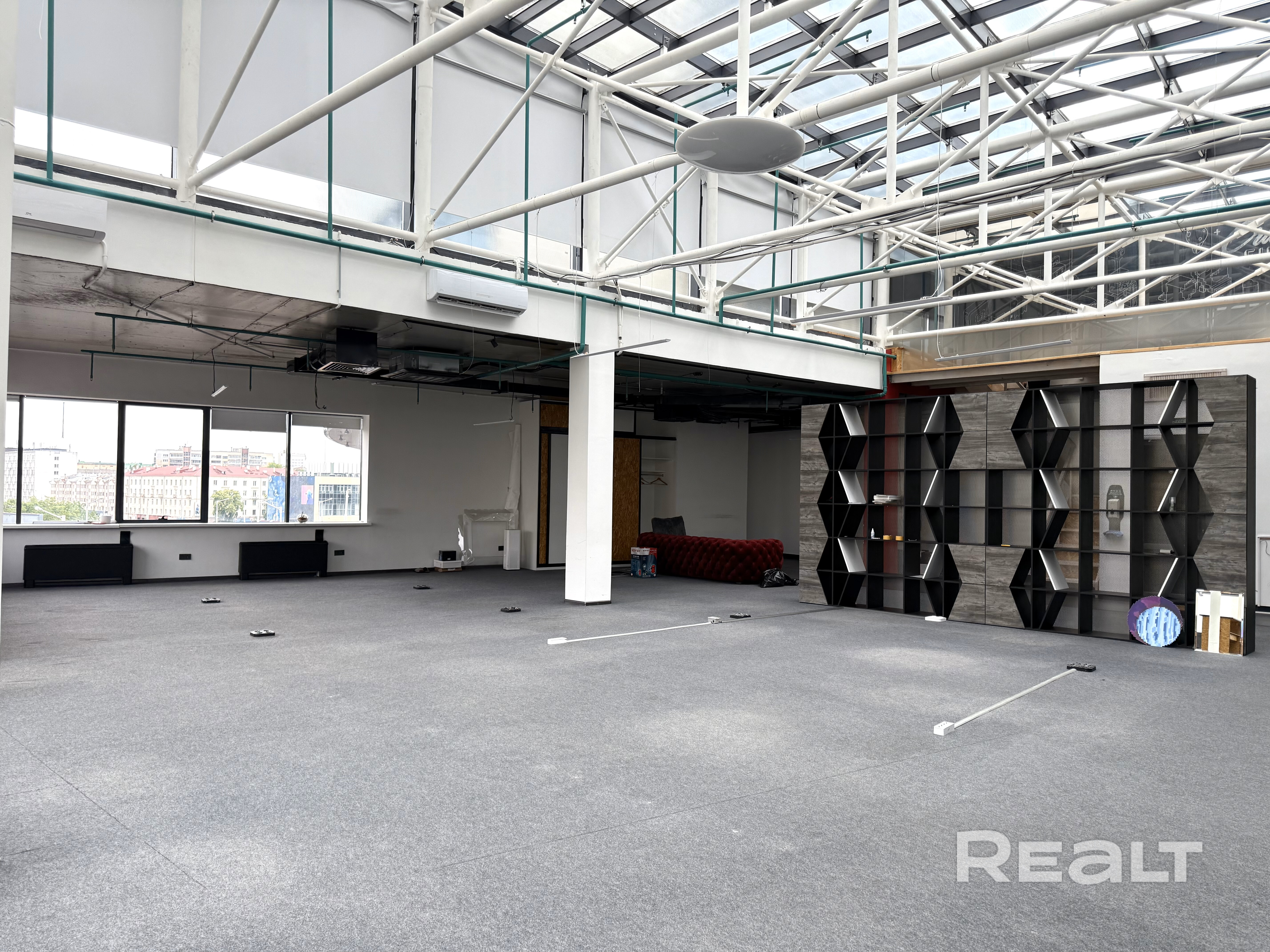 Просторное помещение правильной формы, есть два помещения, отделенные перегородками (могут быть использованы, как закрытые кабинеты, кухня или переговорная). Без подвода воды.