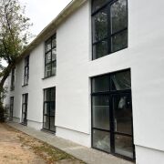 - современные фасадные решения — светлый фасад, высокие окна (3-4 м.)