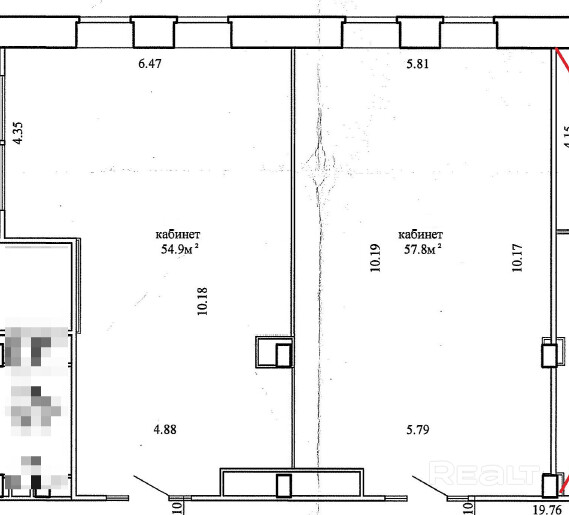 Сдается офис общей площадью 112,7 м2 на ул. Фабрициуса 8Б/1. Состоит из двух кабинетов: 54,9 м2 и 57,8 м2, возможна аренда частями.