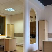 Теплое уютное помещение с мебелью расположено на высоком первом этаже жилого дома. Вход в офисы отдельный от жилого. Территория дома огорожена забором, въезд на парковку через шлагбаум. Удобное транспортное сообщение. На этаже для офисных помещений несколько с/у, горячая и холодная вода. Есть мини-АТС, оптоволокно, компьютерная сеть, домофон. На окнах жалюзи, есть кондиционер. Выгорожена комната с окном и дверью для переговоров. Окна выходят на солнечную сторону. Собственник- два физических лица
