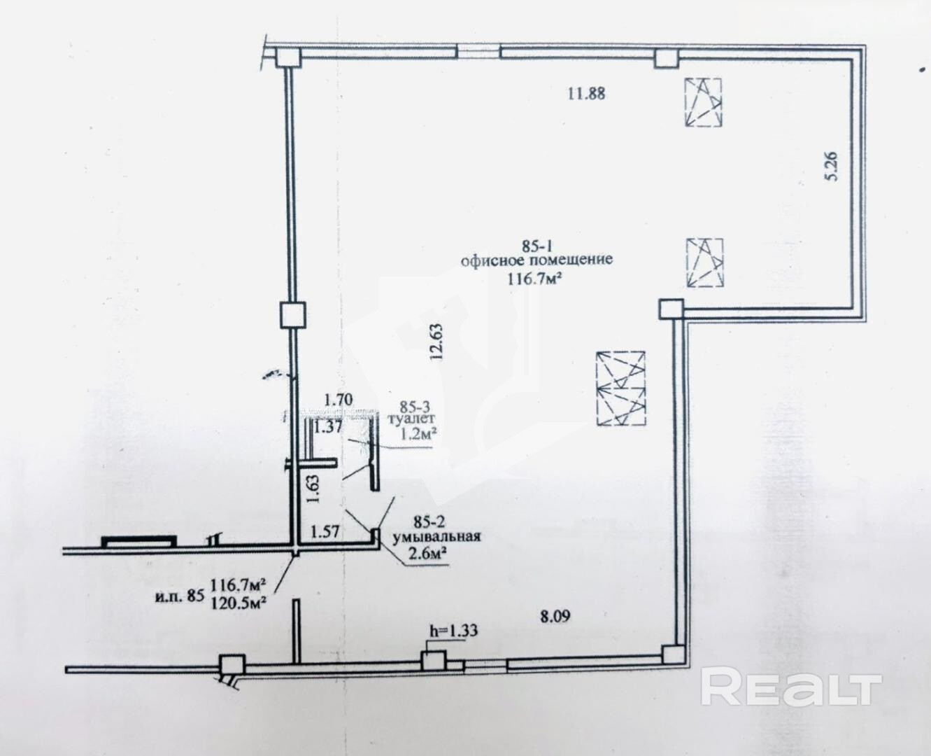 Сдаётся в аренду офисное помещение 120.5м², ул.Немига, 5