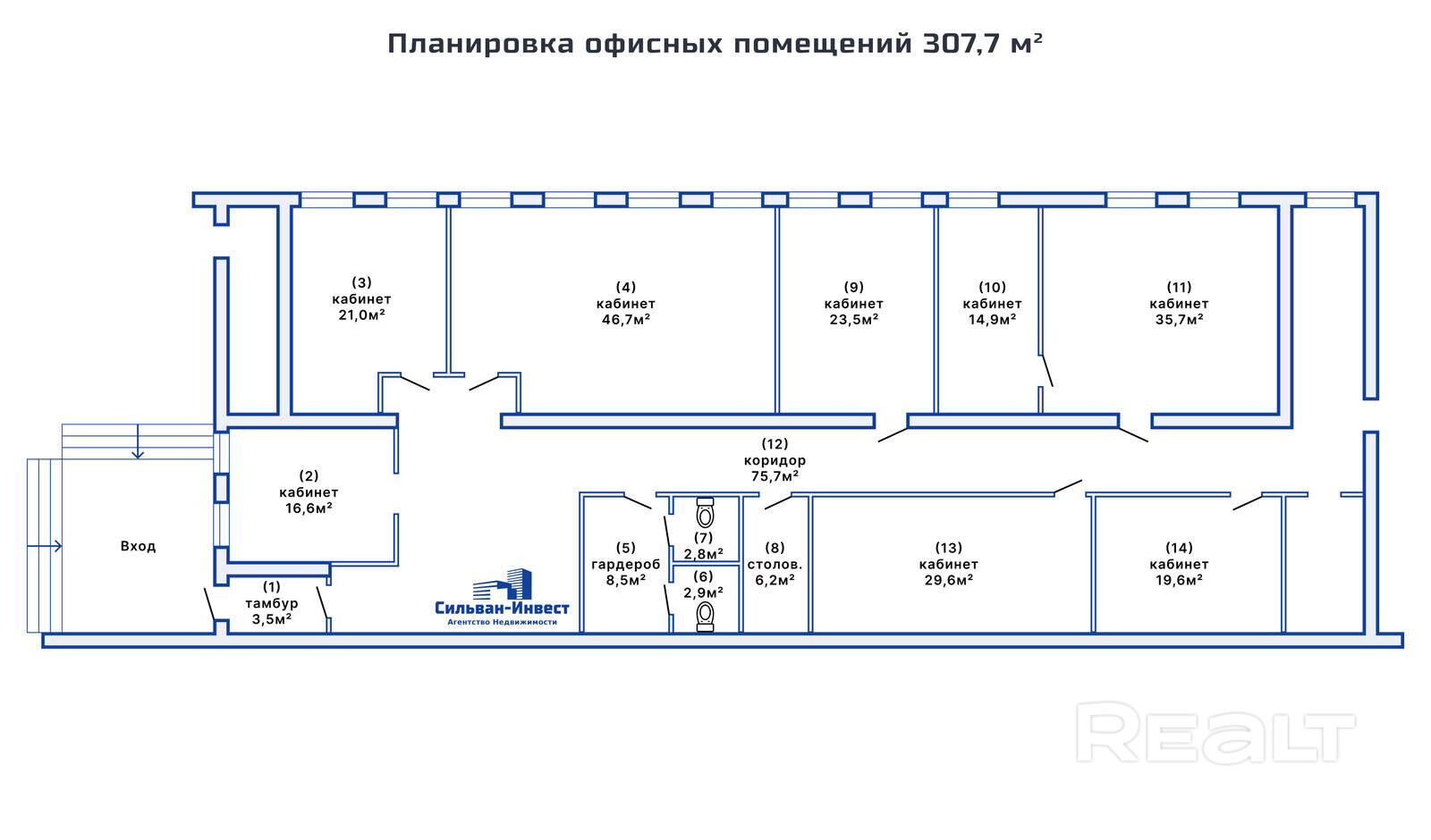 · 7 отдельных кабинетов и комната для переговоров