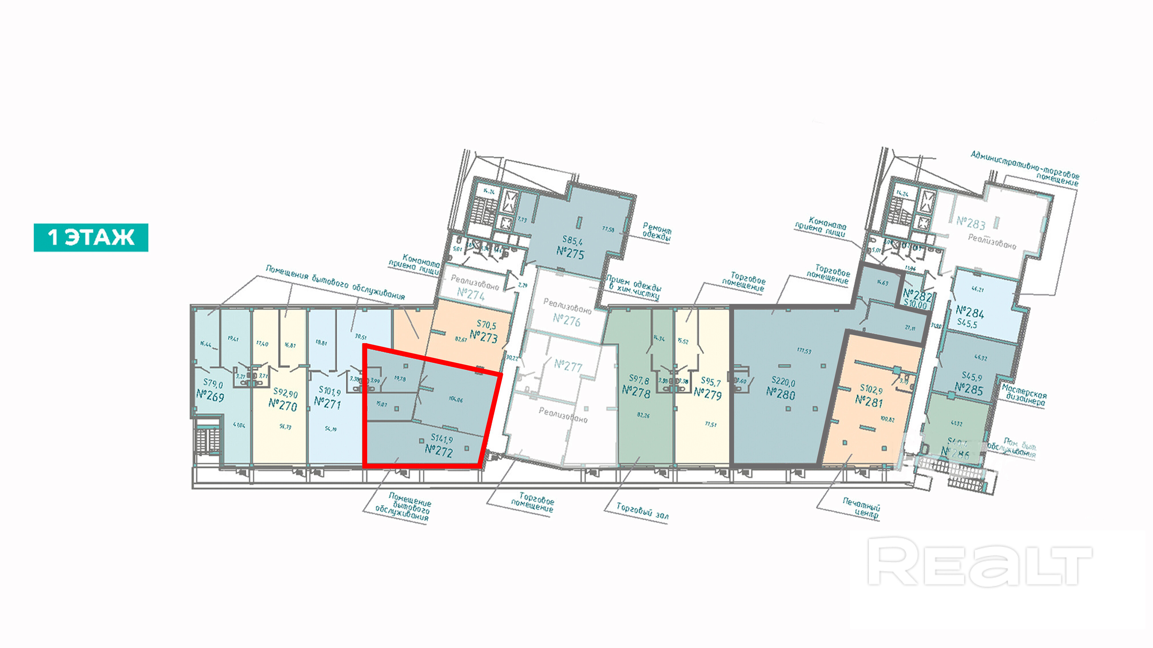 Тип объекта: Торговое помещение площадью: 141,9 м2.