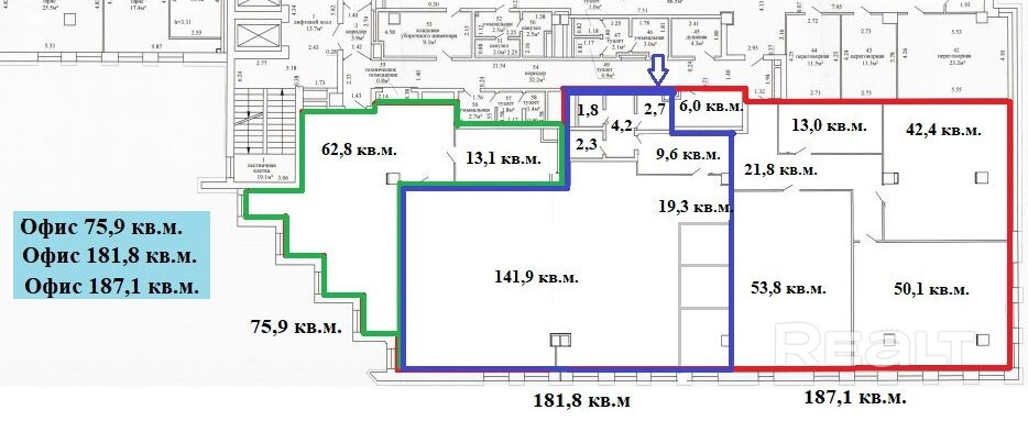 Офисный блок общей площадью - 444,8 м2 располагается на 4-м этаже в БЦ «Каскад-Альфа», по адресу ул. Кальварийская 42.