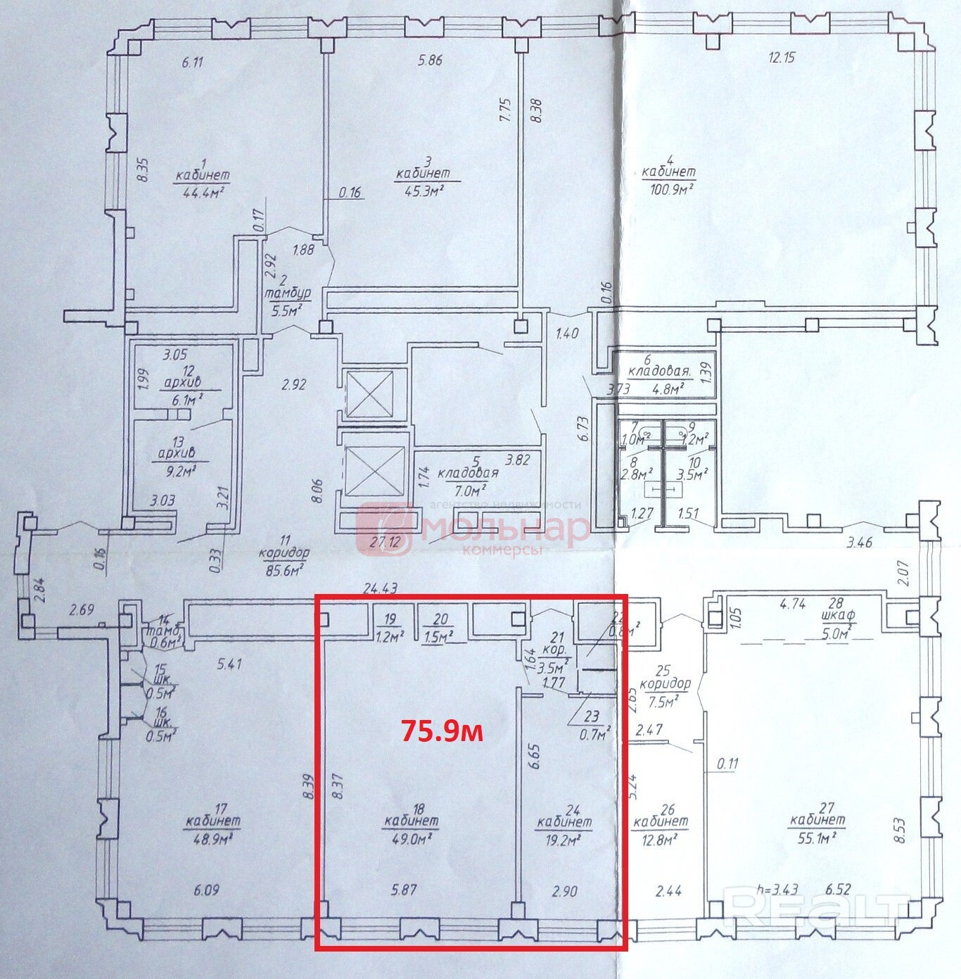 Сдается в аренду офисный блок по адресу улица Могилевская 5. Расположен на шестом этаже административного здания. Состоит из двух кабинетов и входной группы. Общая площадь 80.4м. Стоимость метра квадратного 21 рубль(НДС включен). Коммунальный платеж 11-15 рублей/м в зависимости от сезона. - центр города - ст.м. Институт Культуры в 2 минутах ходьбы - доступ 24/7 Отлично подойдет под офис, услуги и другие сферы вашего бизнеса! Вы не оплачиваете риэлтерские услуги!