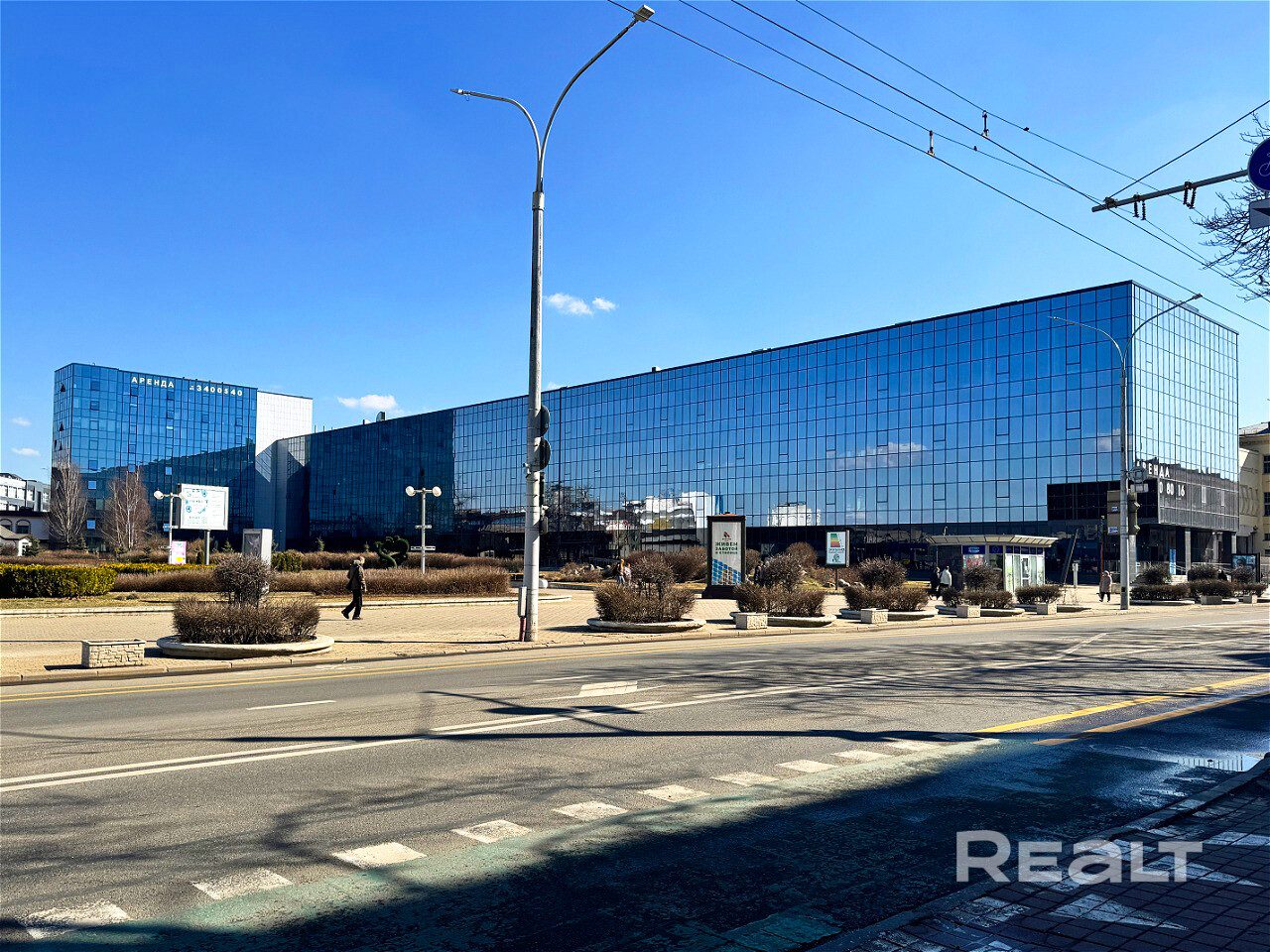 В здании сочетаются: офисы для команд любого размера; помещения для торговли и сферы услуг; фудкорт, кафе, тренажёрный зал и гипермаркет.