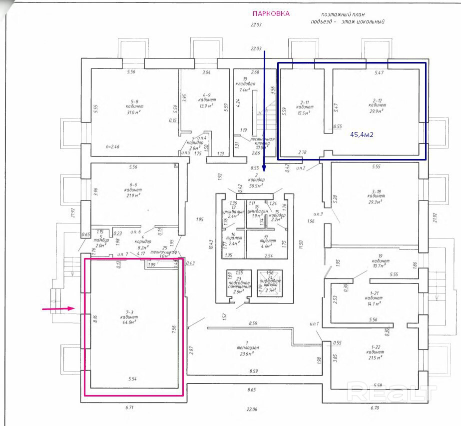 Имеются два помещения 44 и 45,4 м2. Выполнен новый современный ремонт. На окнах установлены роллеты. Интернет – оптоволокно, телефонные линии, кондиционер.