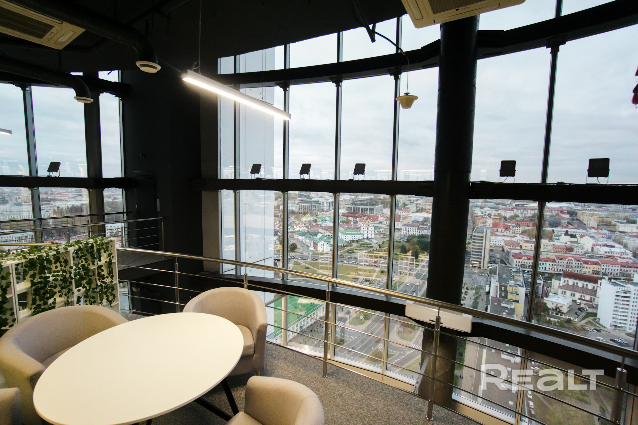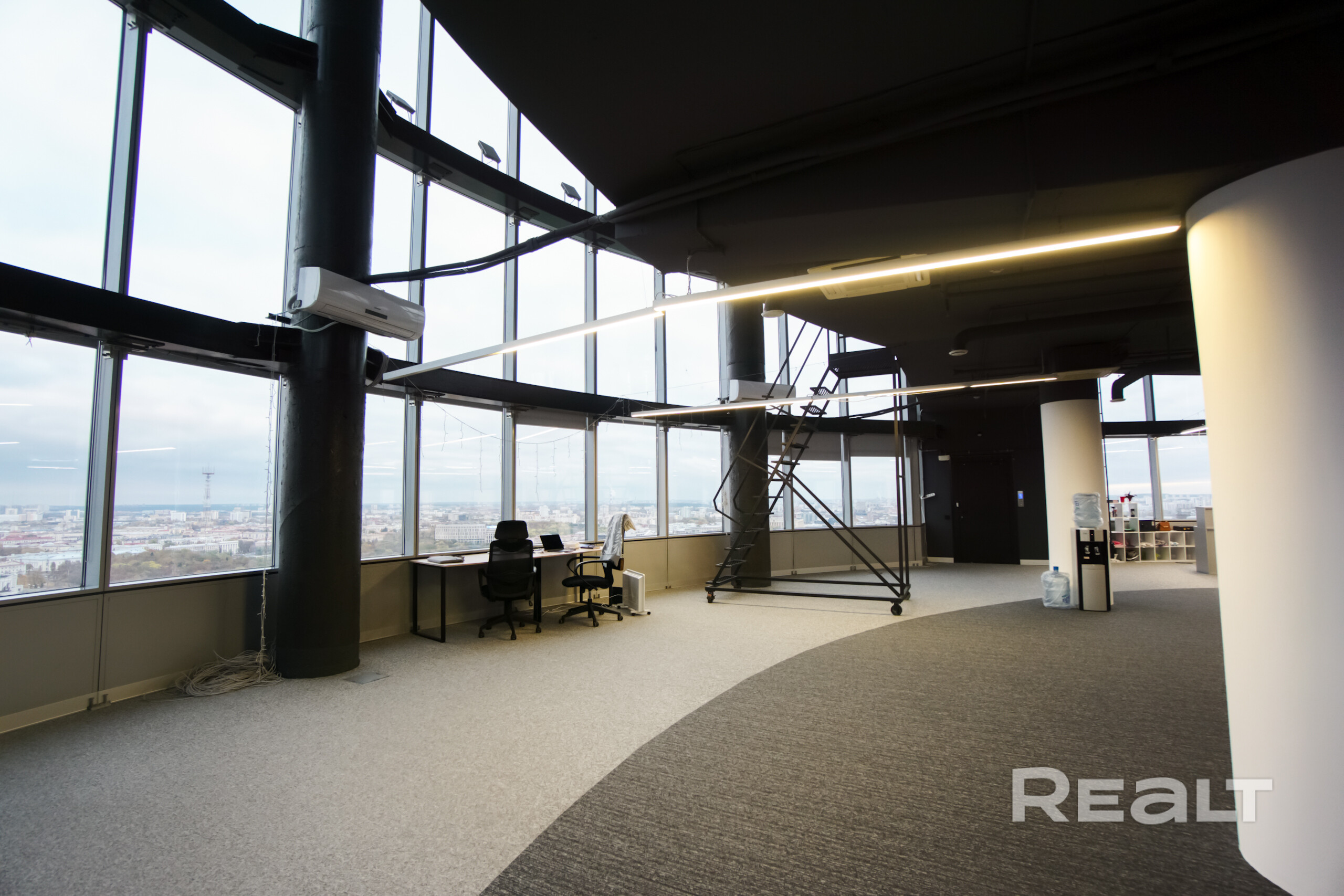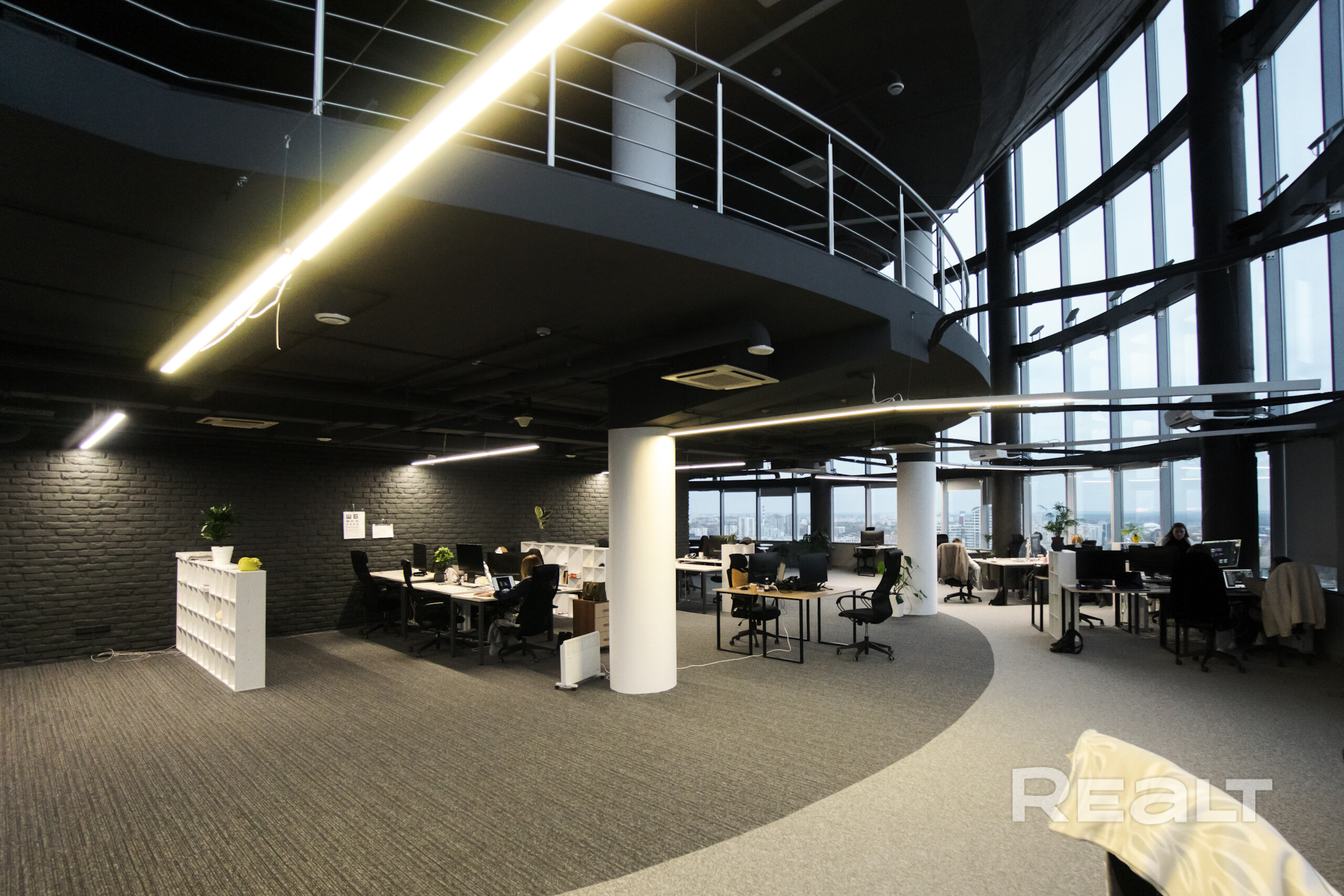 Аренда двухуровневого офисного блока площадью 695,1м2 (437.6 м2 + 257.5 м2) в БЦ "Royal Plaza". Планировка open space, имеется две оборудованные кухни и переговорная комната. Отдельный панорамный лифт, который останавливается на 29 и 30 этажах и на 28-м этаже, где разместился ресторан.