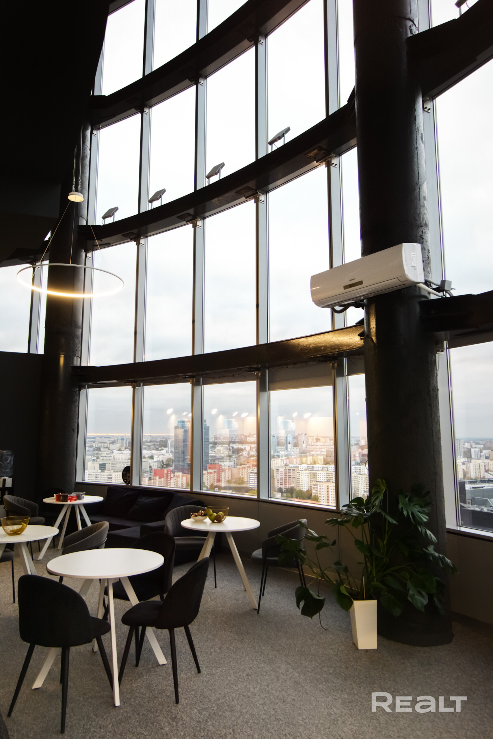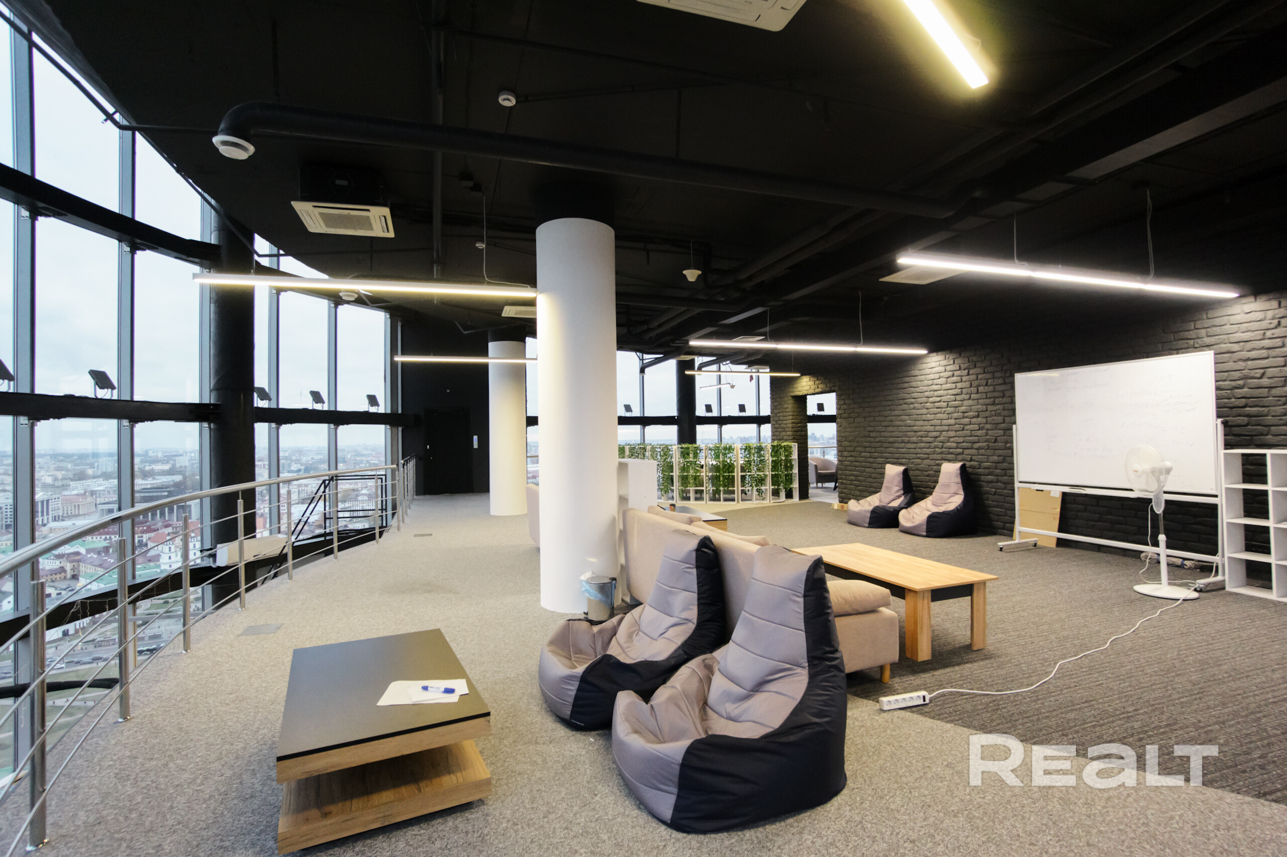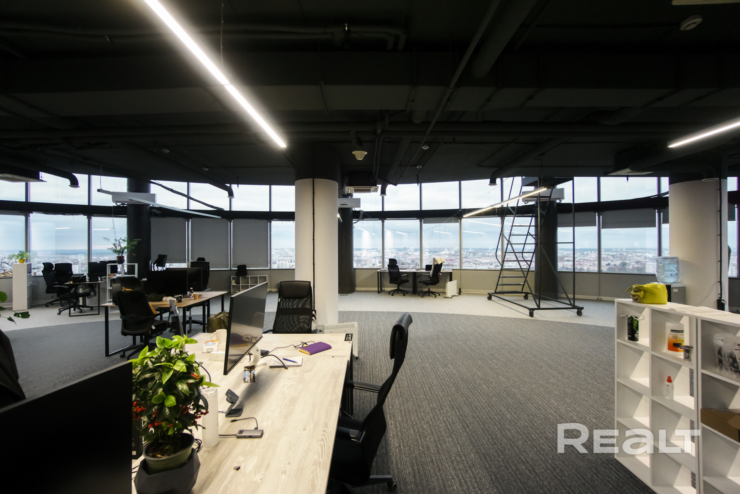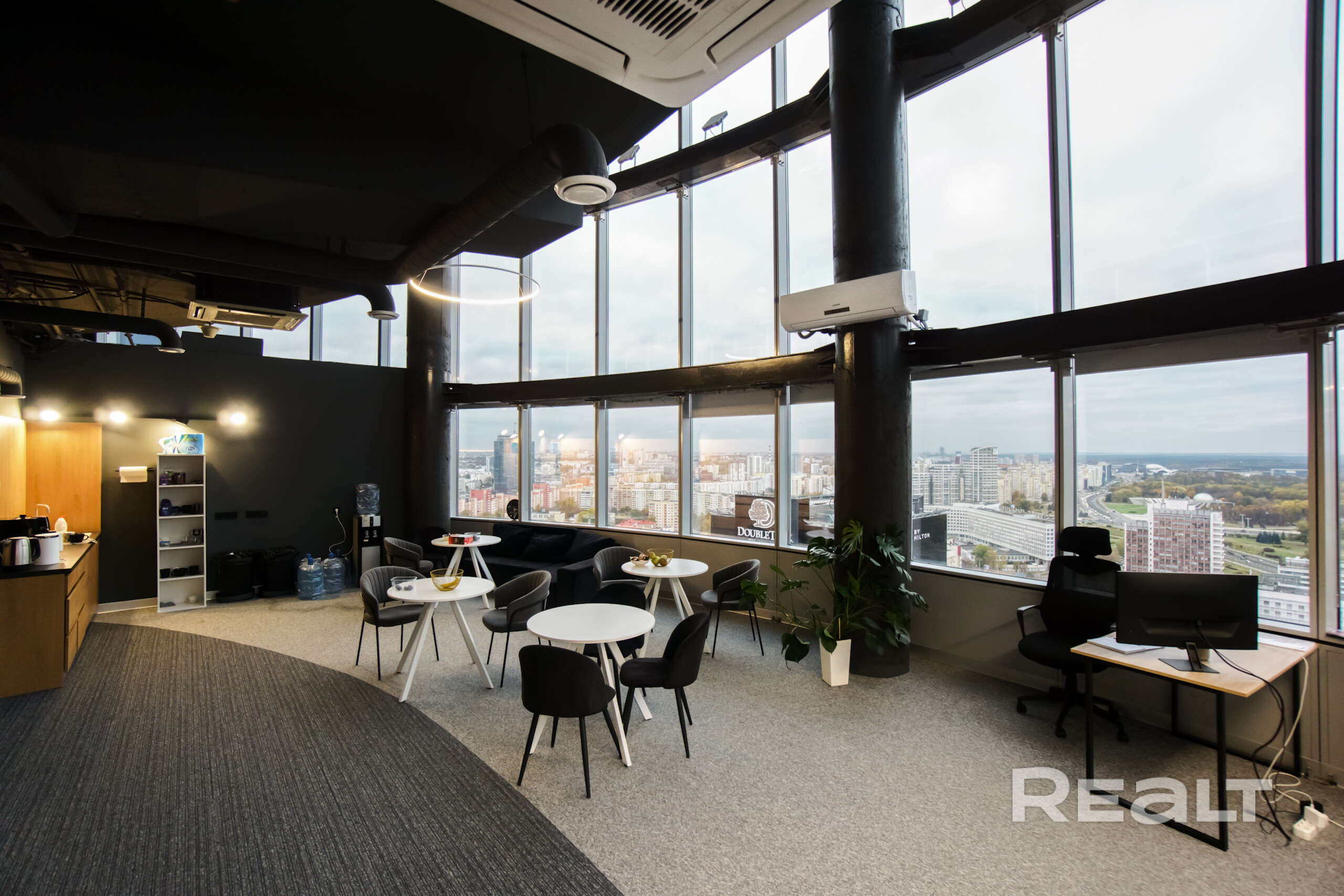 Аренда двухуровневого офисного блока площадью 695,1м2 (437.6 м2 + 257.5 м2) в БЦ "Royal Plaza". Планировка open space, имеется две оборудованные кухни и переговорная комната. Отдельный панорамный лифт, который останавливается на 29 и 30 этажах и на 28-м этаже, где разместился ресторан.