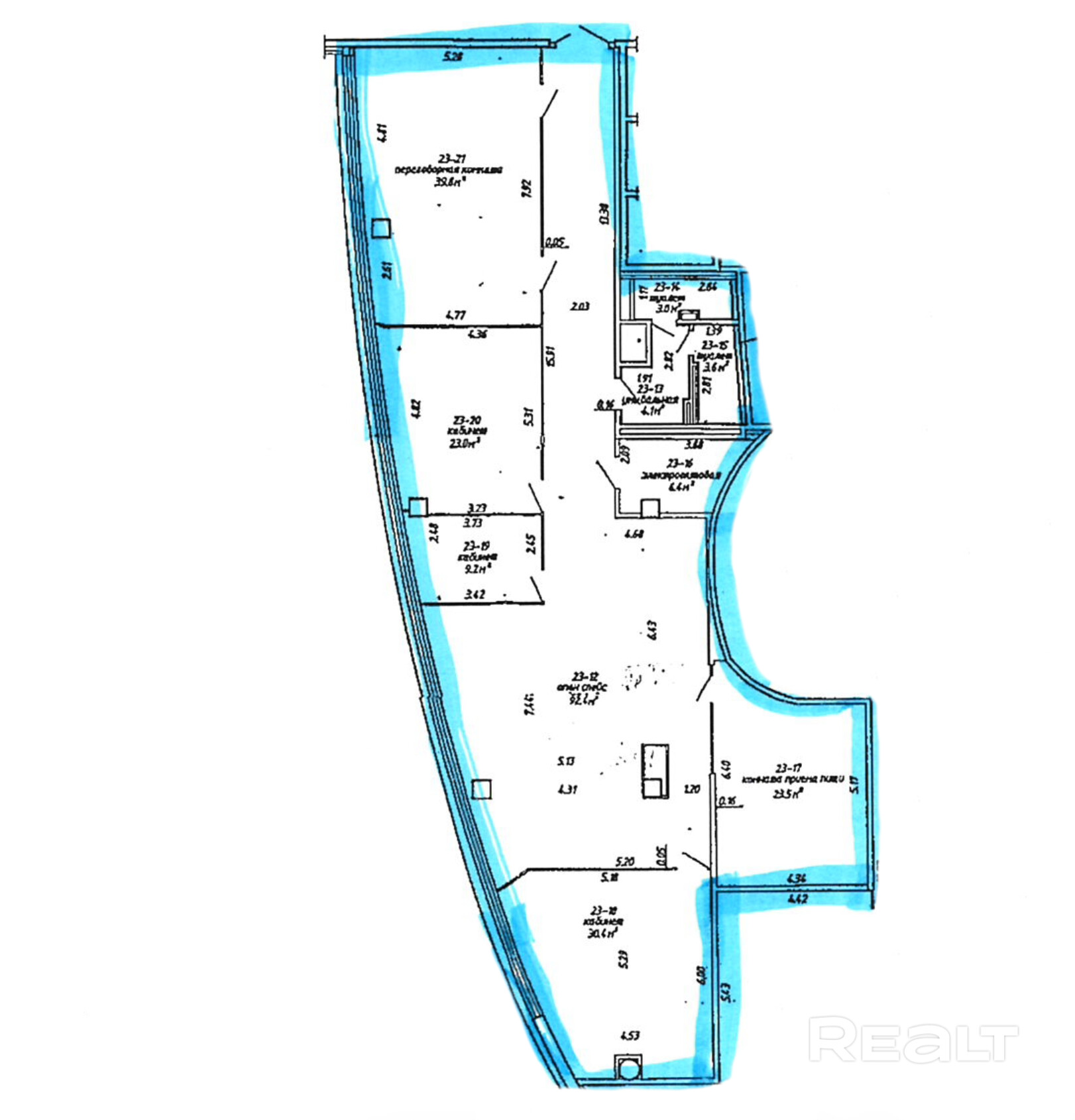 Сделан отличный ремонт. Имеются все коммуникации, система кондиционирования, оптоволокно, помещение для приема пищи и санузлы.