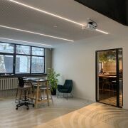 - офигенная зона для мастер-классов, мини-конференций и презентаций уже смонтированная в офисе